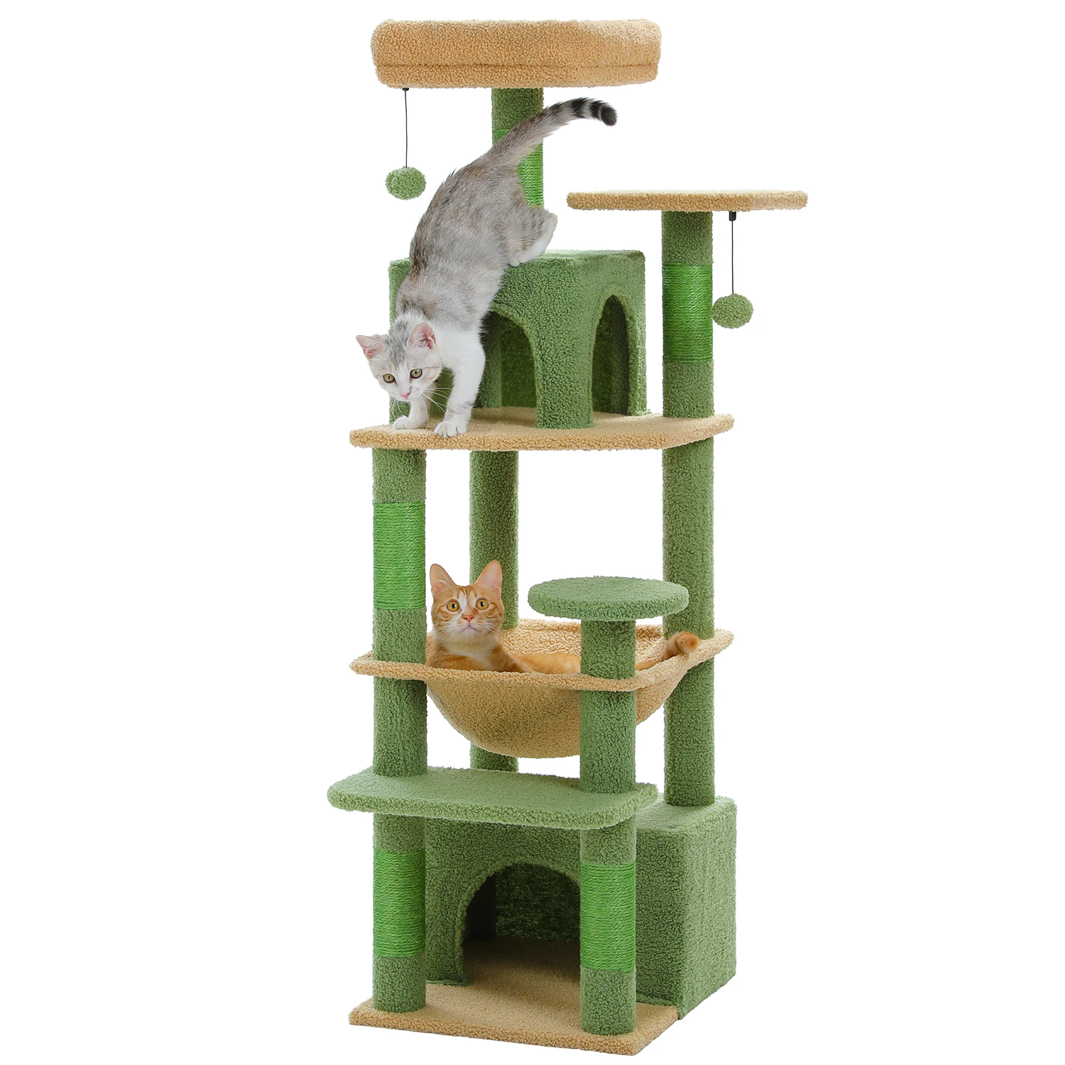 ¡Rascar completamente y ahorrar muebles!: A los gatos les encanta rascarse.¡Con 5 postes reforzados envueltos con sisal natural en múltiples niveles, pueden rayar su contenido y mantenerse alejados de muebles caros!Además, tus amigos peludos podrían practicar afilar las uñas y divertirte más.
