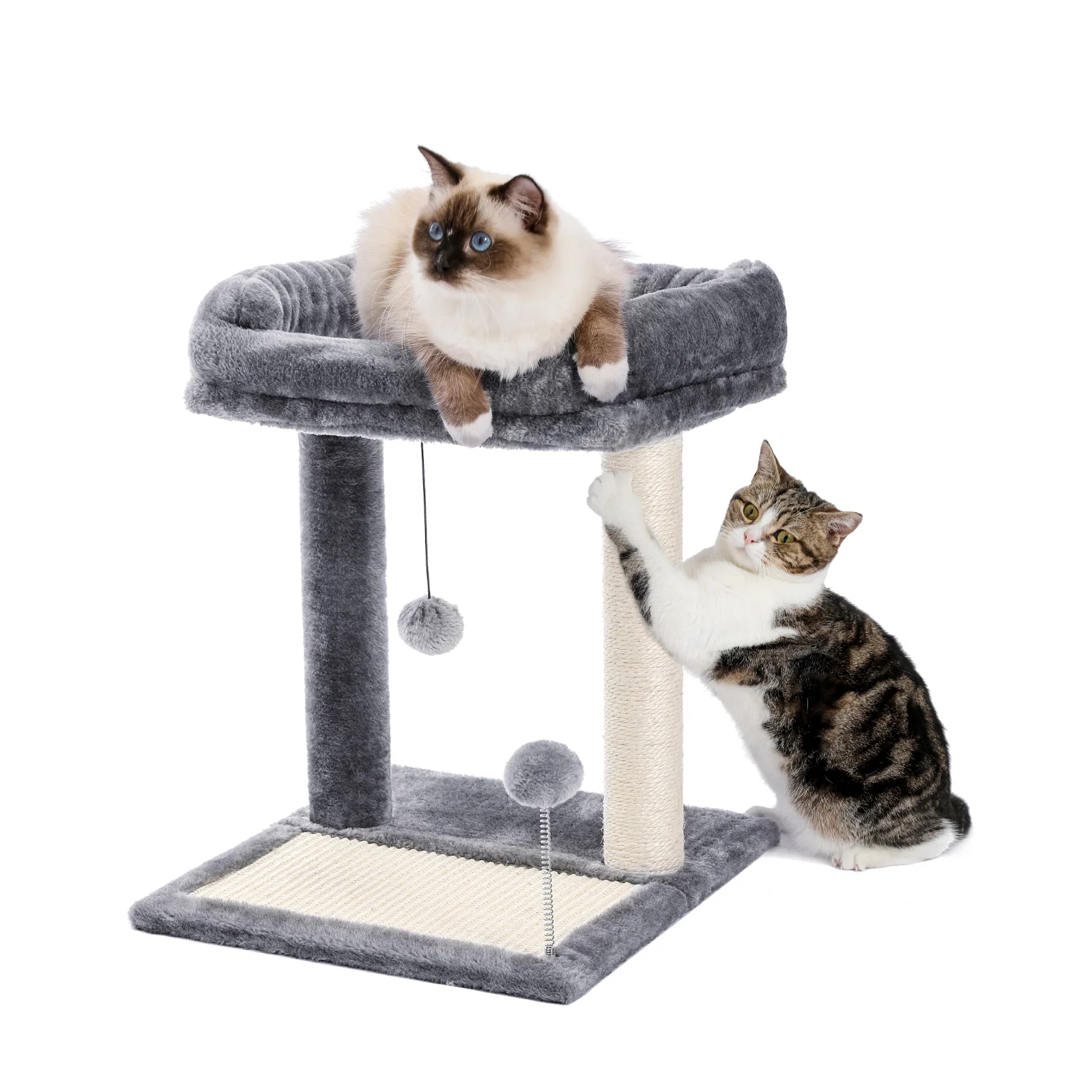 Torre de árbol para gatos de 44 cm con cama superior extraíble, tabla para rascar y postes para rascar dobles suficientes para gatitos de interior para rascarse y descansar