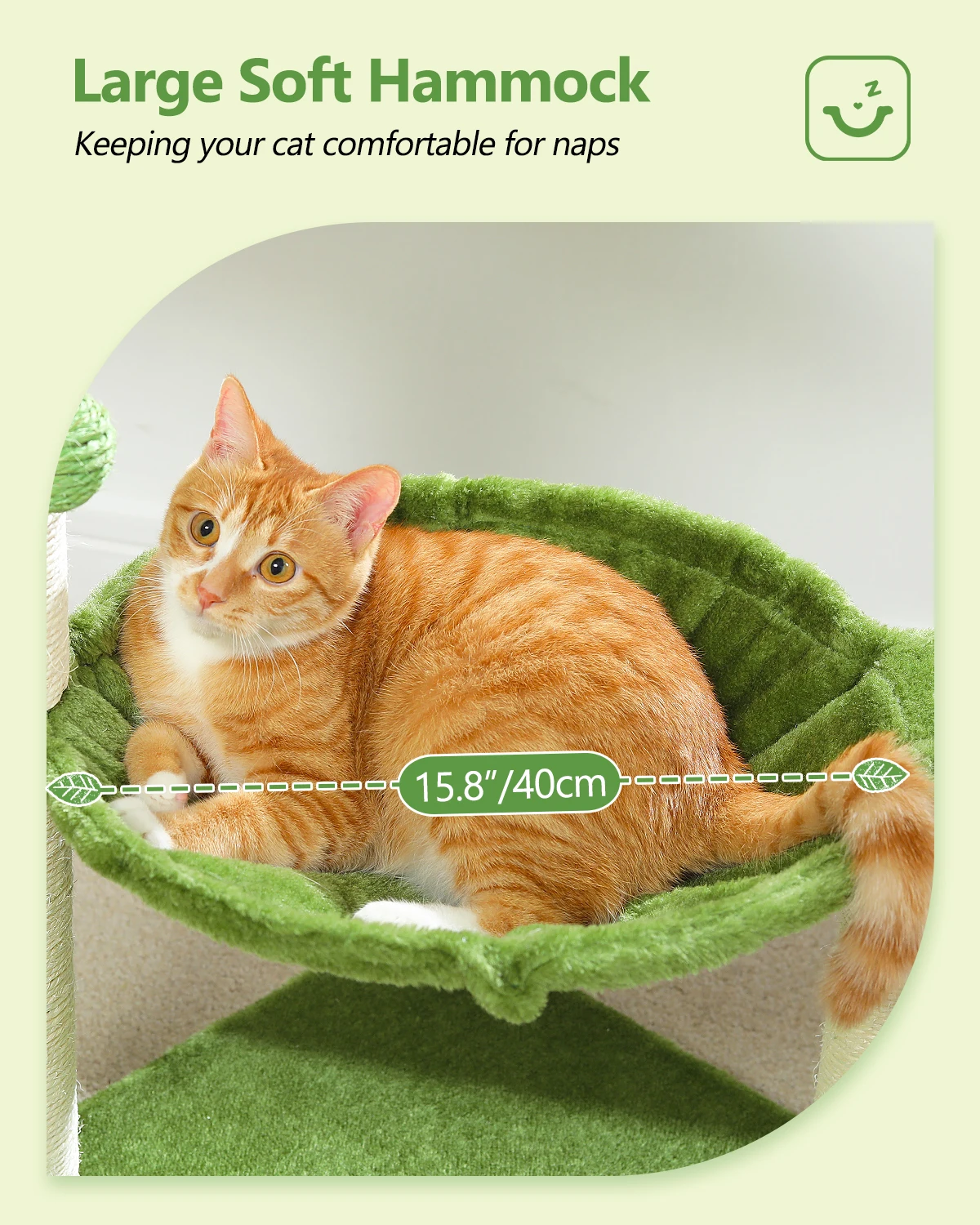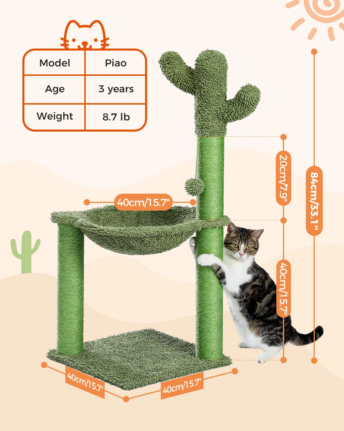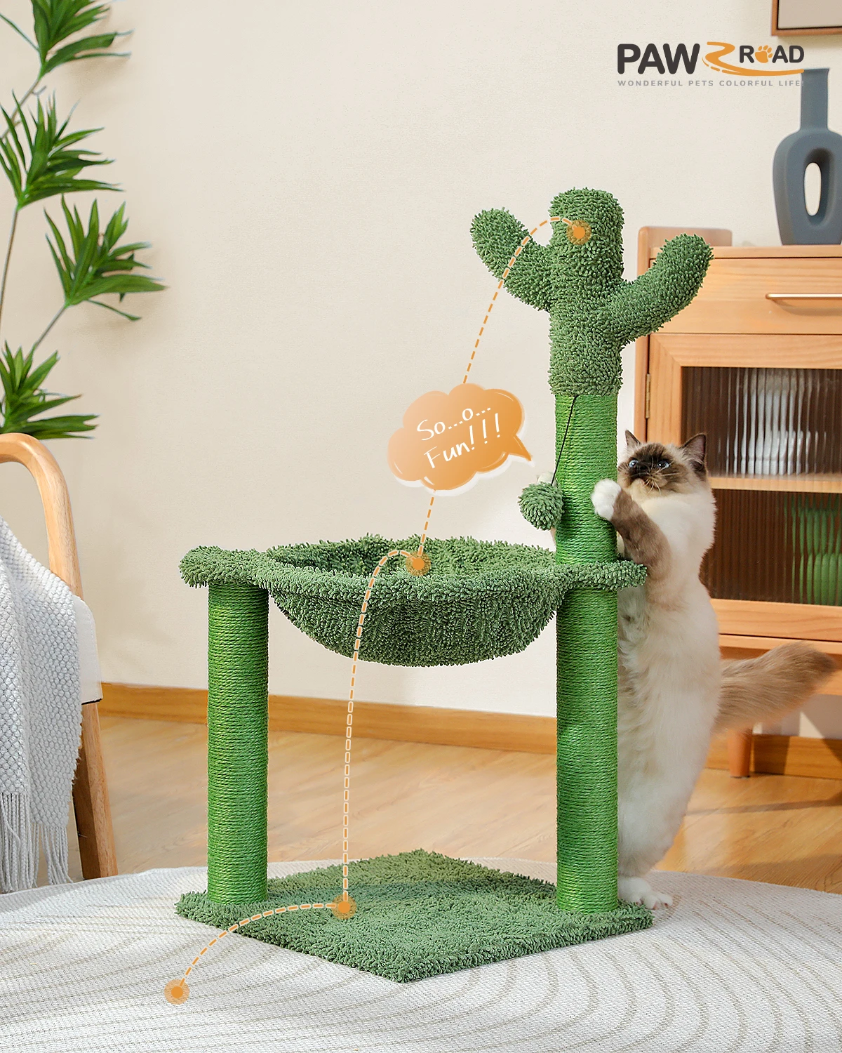 Torre pequeña de árbol para gatos de Cactus de H84CM con hamaca, postes para rascar, cesta de felpa, cepillo para picazón para gatito, duradero, gran superficie, pelota para percer, juguetes para jugar
