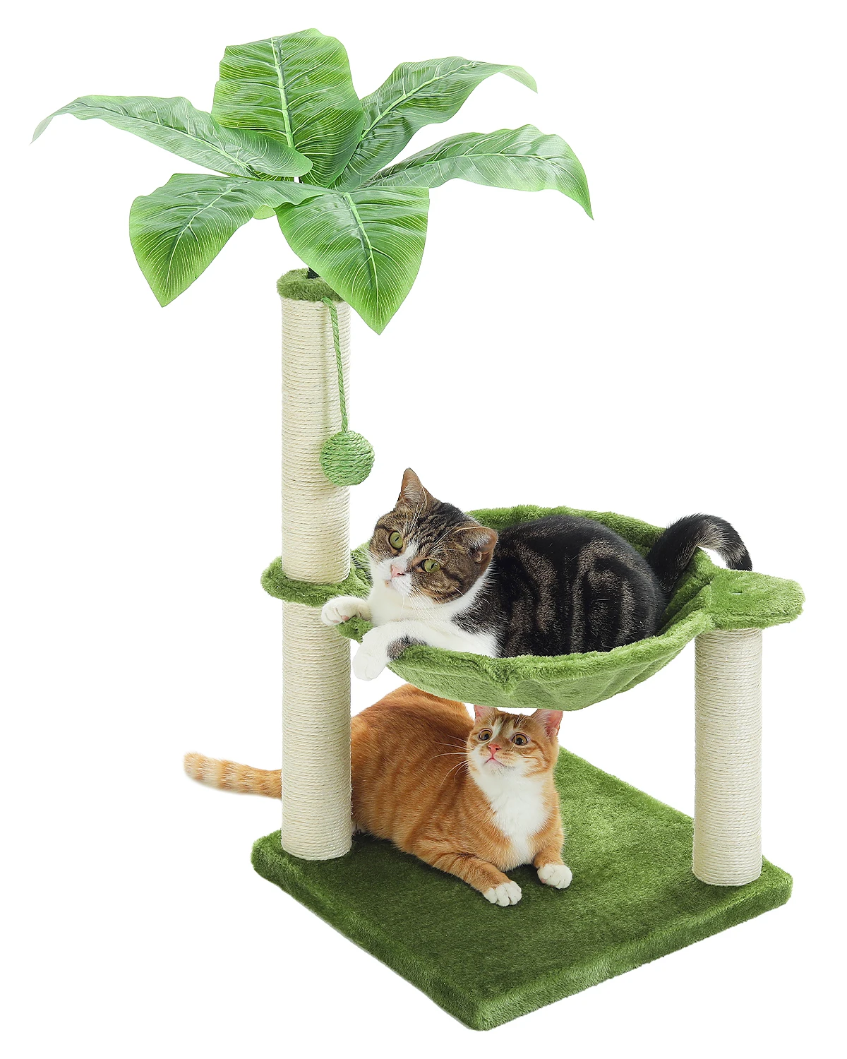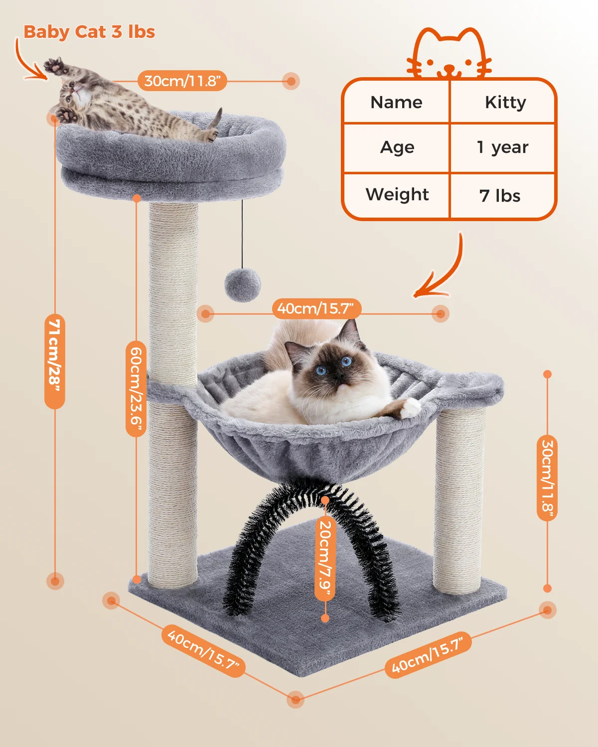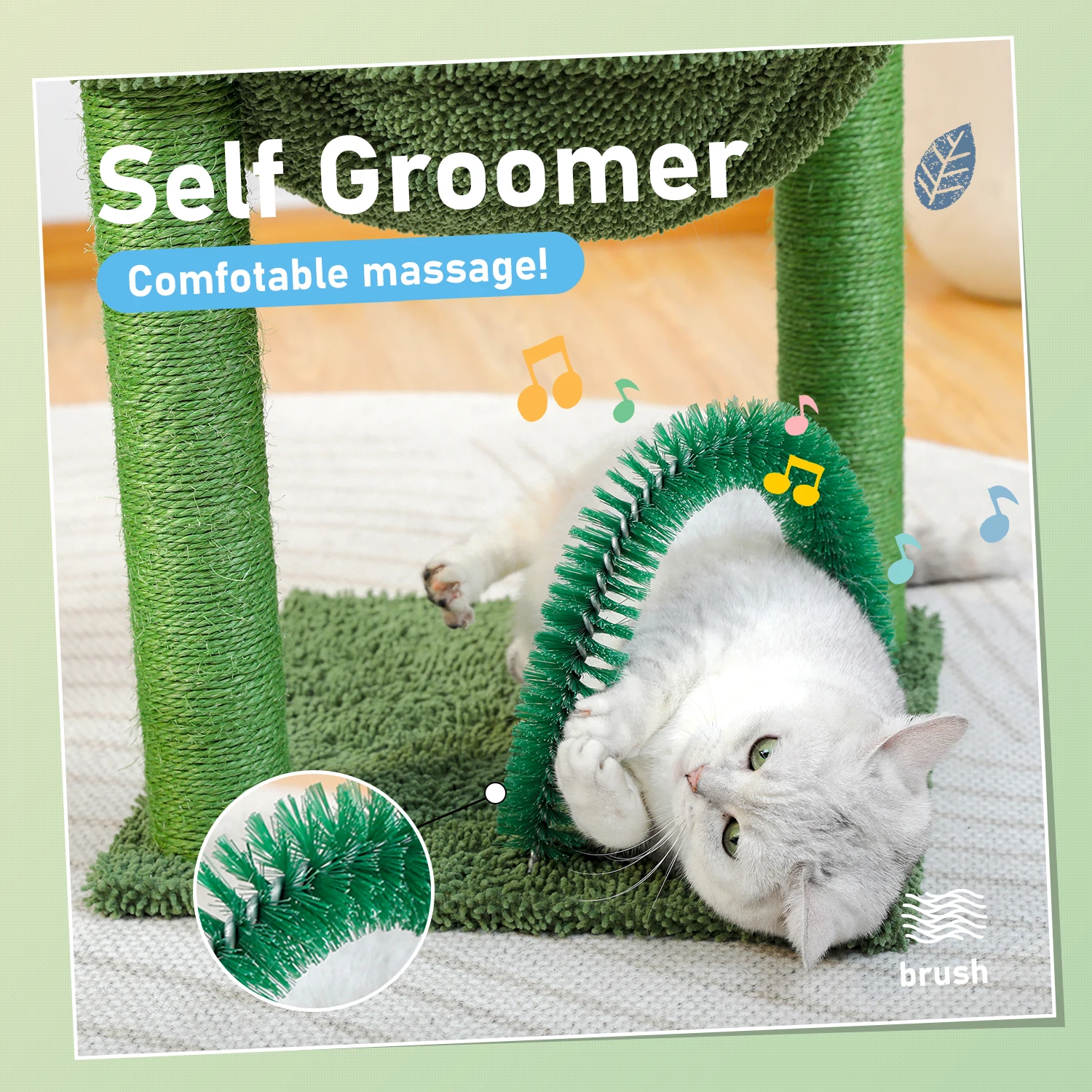 Torre pequeña de árbol para gatos de Cactus de H84CM con hamaca, postes para rascar, cesta de felpa, cepillo para picazón para gatito, duradero, gran superficie, pelota para percer, juguetes para jugar