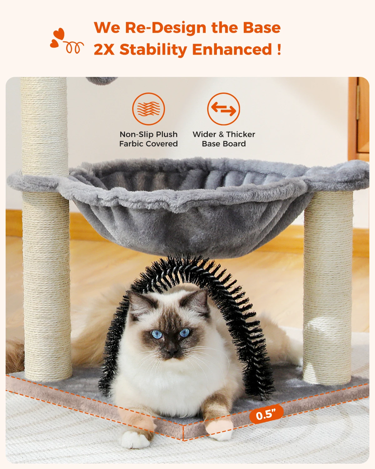 Estable y sólido, bien hecho con material de alta calidad, base de 40 * 40 cm que hace que el árbol para gatos sea más estable