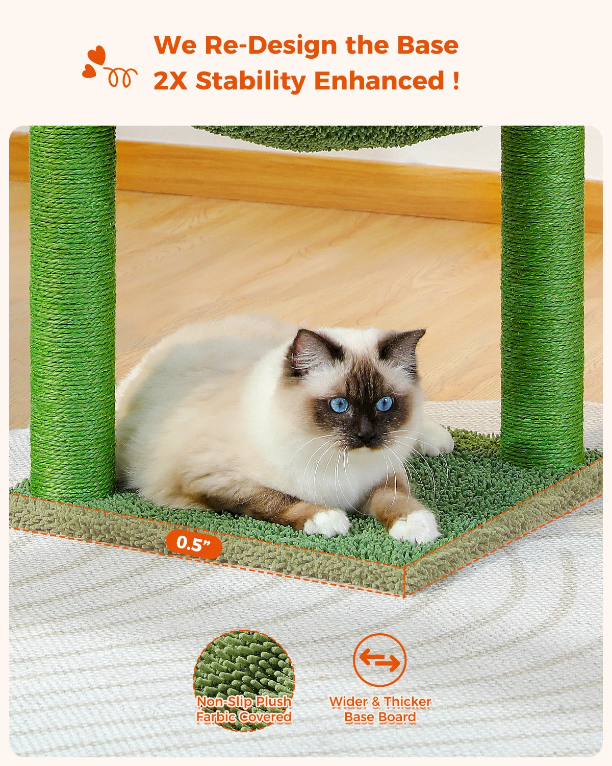 Torre pequeña de árbol para gatos de Cactus de H84CM con hamaca, postes para rascar, cesta de felpa, cepillo para picazón para gatito, duradero, gran superficie, pelota para percer, juguetes para jugar