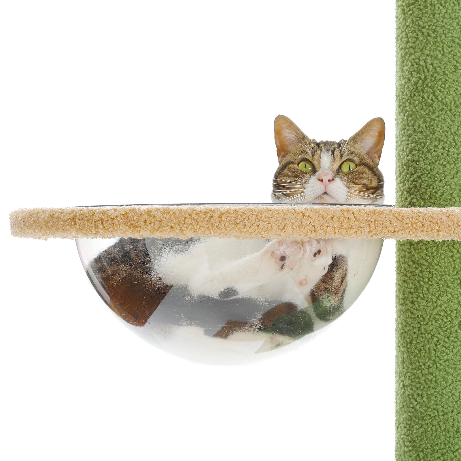 Amplia percha para gatos y hamaca extraíble: este árbol alto para gatos de interior cuenta con una espaciosa percha para gatos con borde elevado que permite que el gato grande se acueste de forma segura.La hamaca para gatos se puede reemplazar con un cuenco de acrílico transparente opcional, que ofrece a su gato una experiencia de relajación de lujo y observa el hogar desde el primer nivel del árbol para gatos.