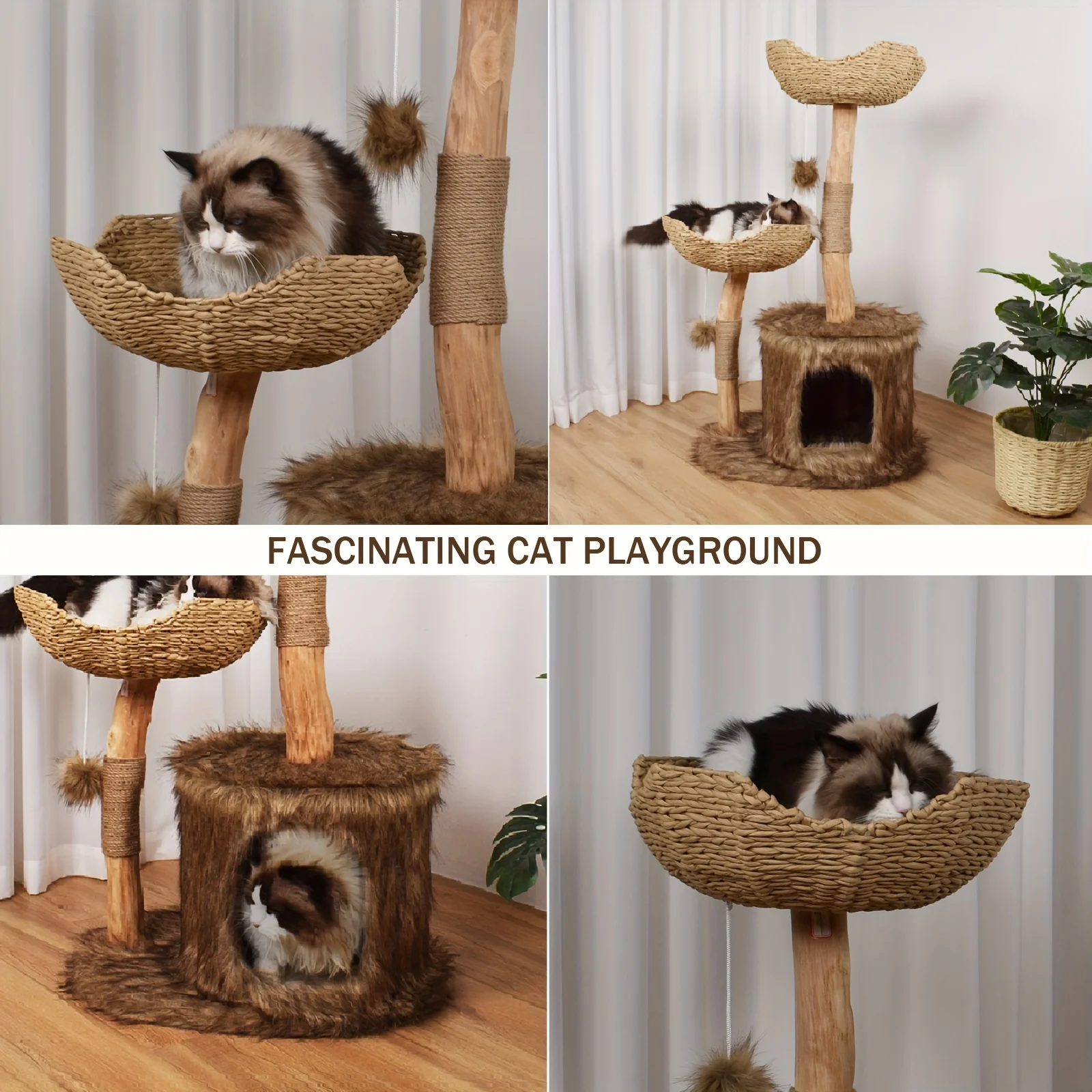 Diseño divertido: el marco general para trepar gatos está modelado a partir de un árbol grande, simulando su tronco y sus ramas.El diseño general es sólido y puede acomodar varios gatos al mismo tiempo.Tanto el color como la forma son realistas e interesantes.Este árbol ofrece un ambiente natural para un gato, en interiores.