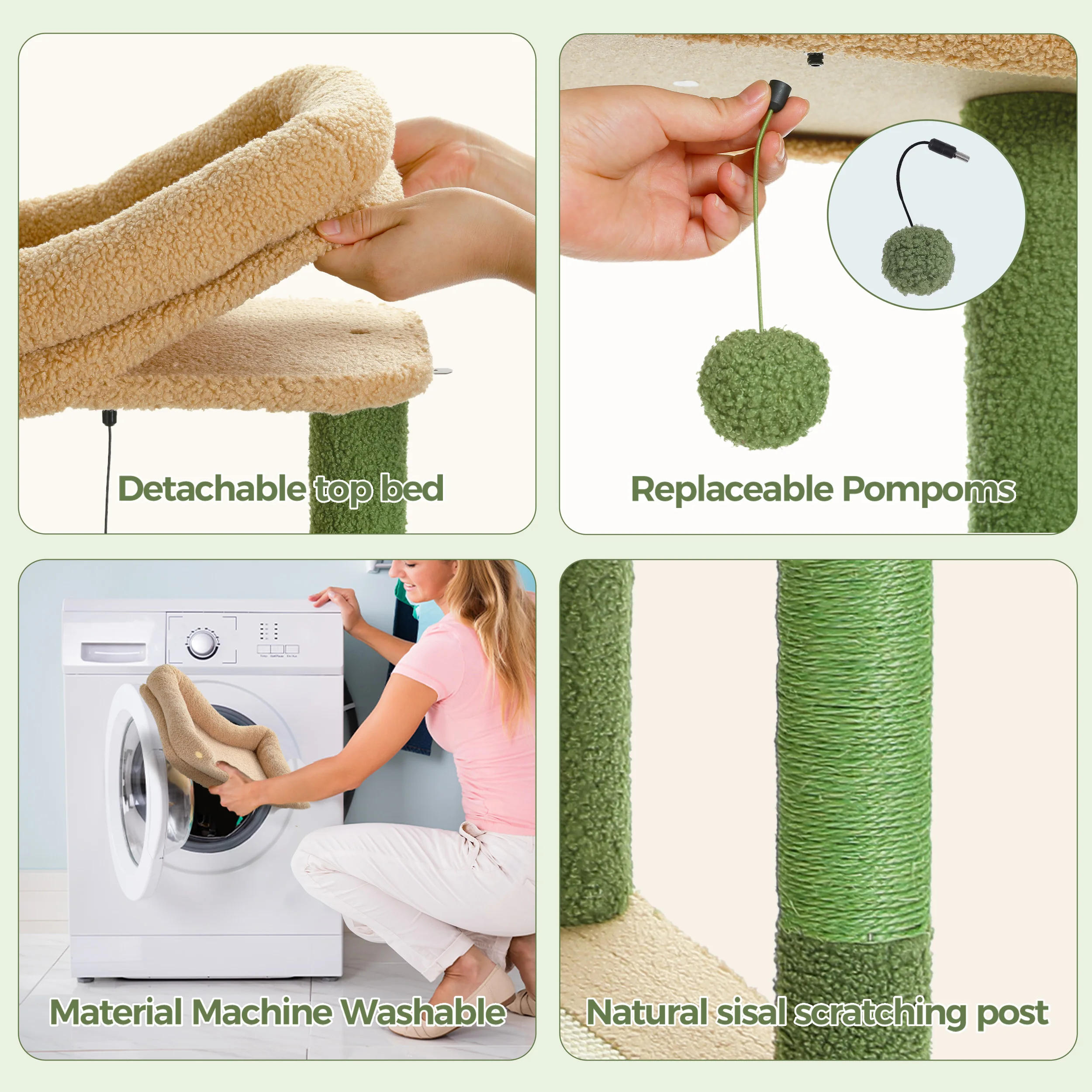 3 palitos de pompones extraíbles:Mejora el tiempo de juego de tu gato con nuestro árbol para gatos que cuenta con tres palitos de pompones extraíbles.Este diseño único garantiza horas de entretenimiento interactivo para su compañero felino.