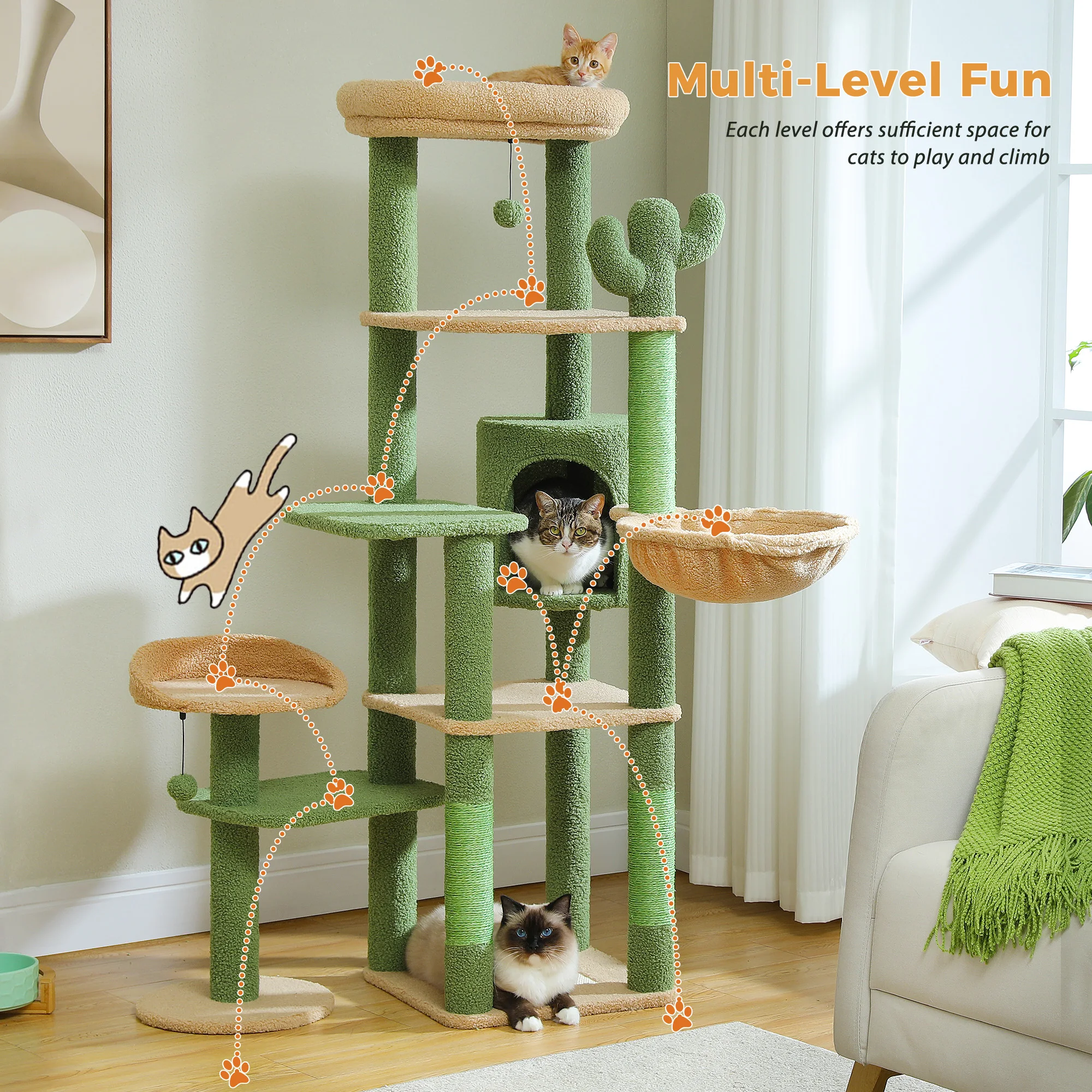 Multicapa para relajarse:Este árbol alto para gatos tiene una percha superior grande, condominio privado, hamaca grande, un rascador cubierto con sial y una bola de pompón esponjosa para gatitos, gatos pequeños y gatos medianos para descansar y entretenerse.Cada nivel ofrece suficiente espacio para que los gatos jueguen y trepen, capaz de albergar de 4 a 5 gatos adultos jugando simultáneamente.