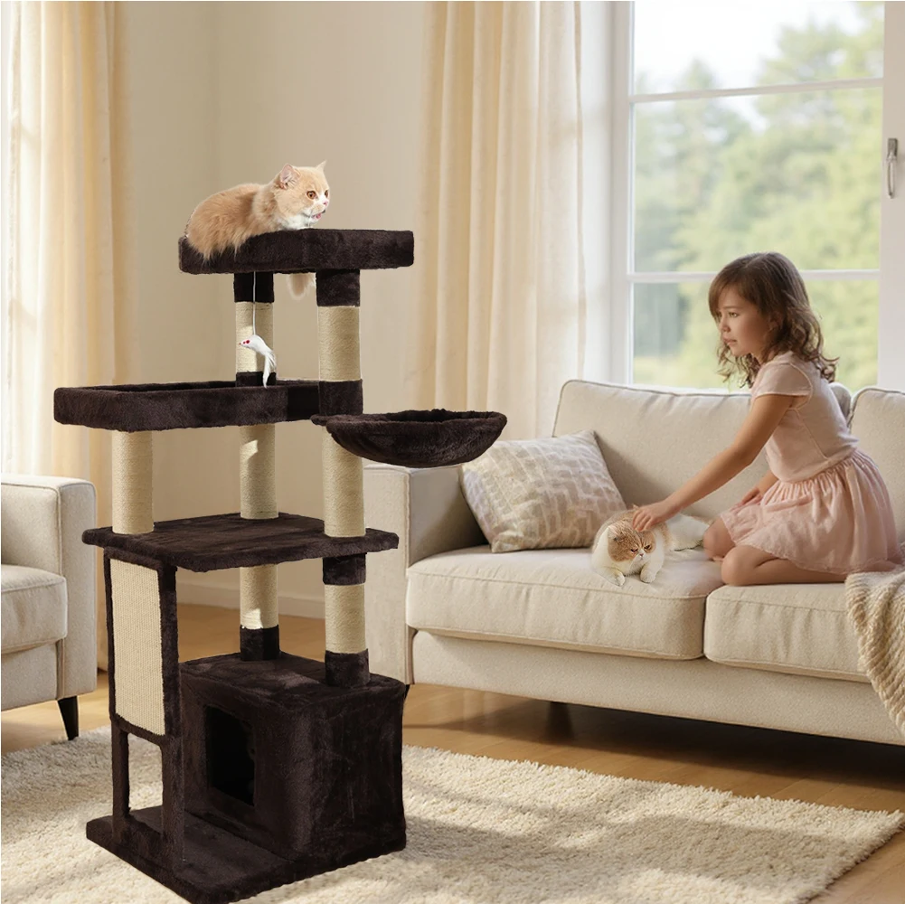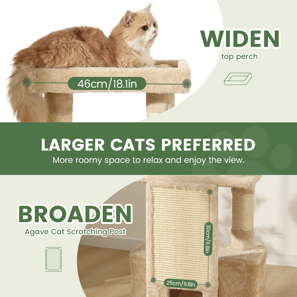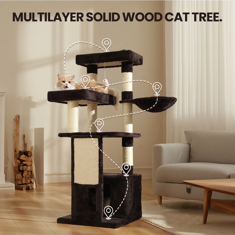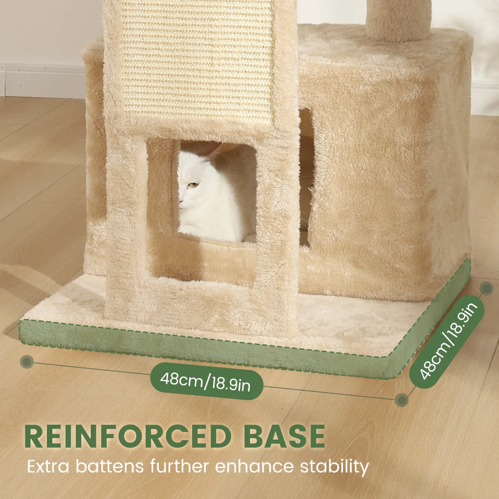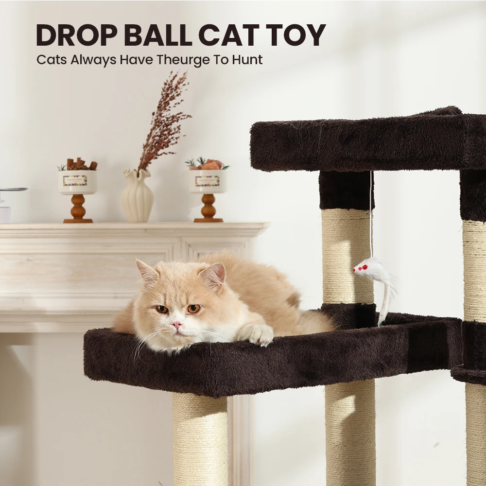 Estructura de madera contrachapada de calidad profesional, estable y duradera.¡Dile adiós a las hojas baratas!El esqueleto central está hecho de madera contrachapada de alta calidad, que es más estable y resistente, y puede soportar innumerables saltos y carreras de los gatos.Proporcionar una base de juego duradera para su bebé activo es una inversión sin preocupaciones y con valor agregado.