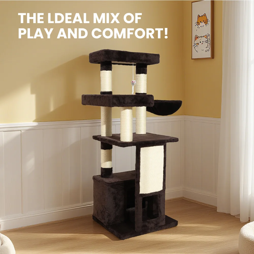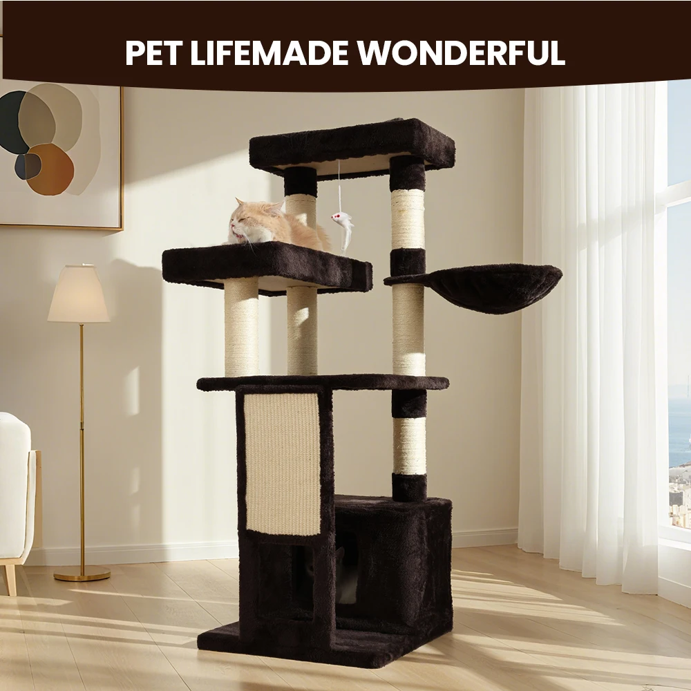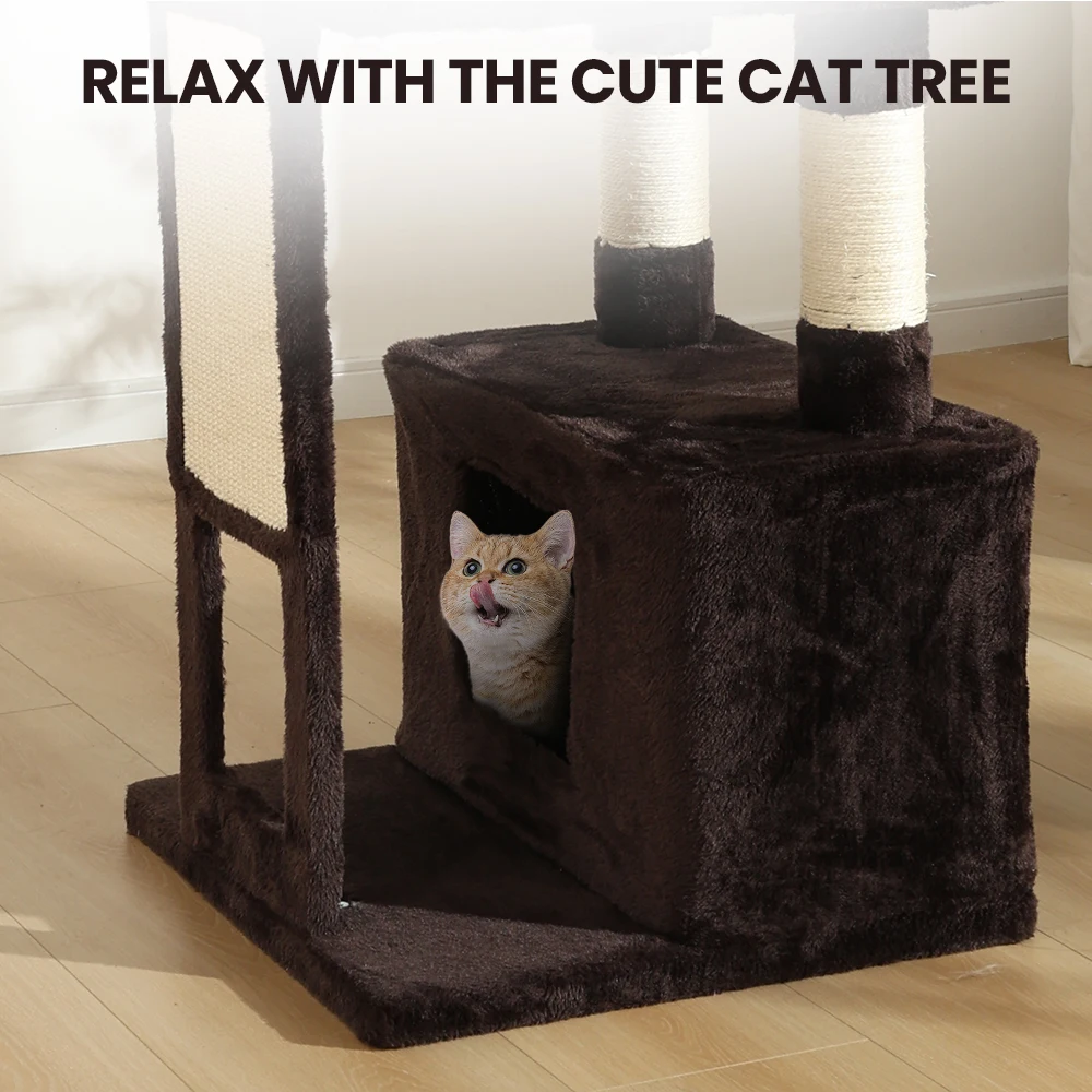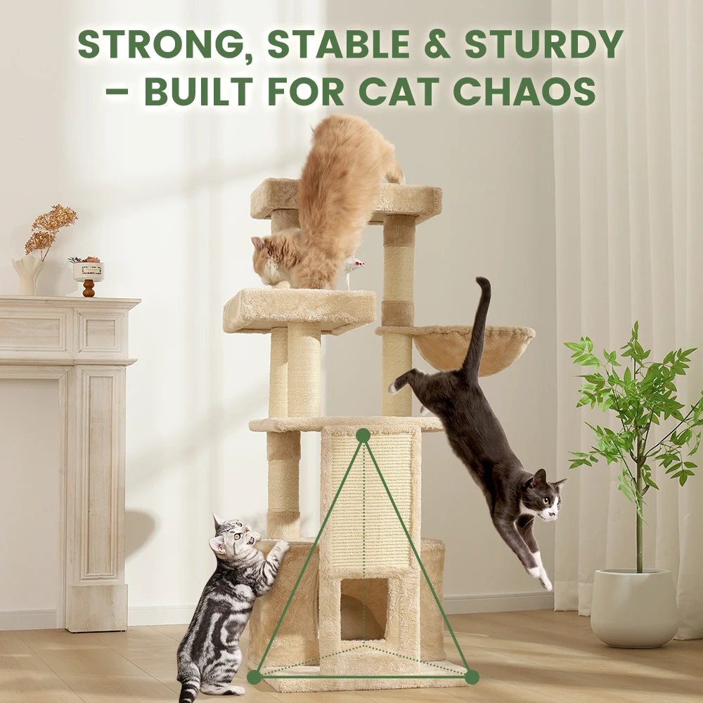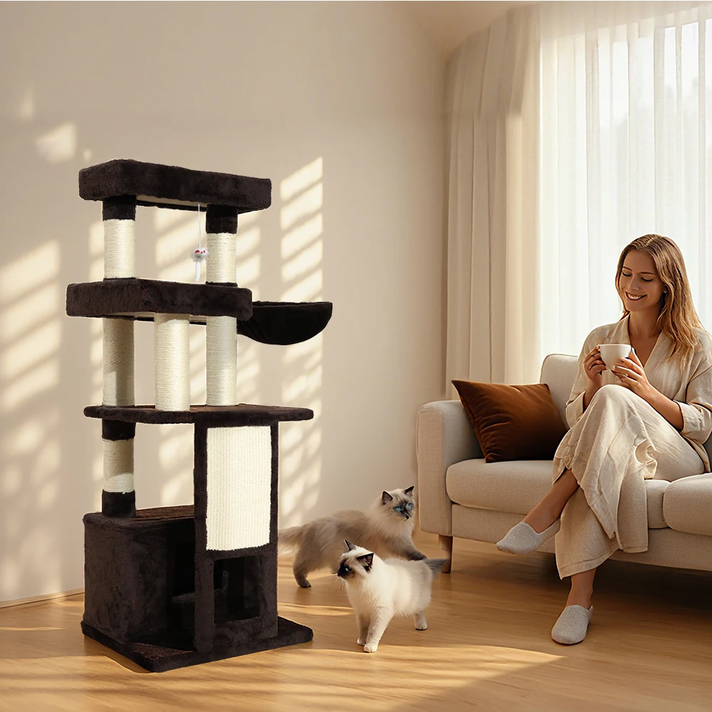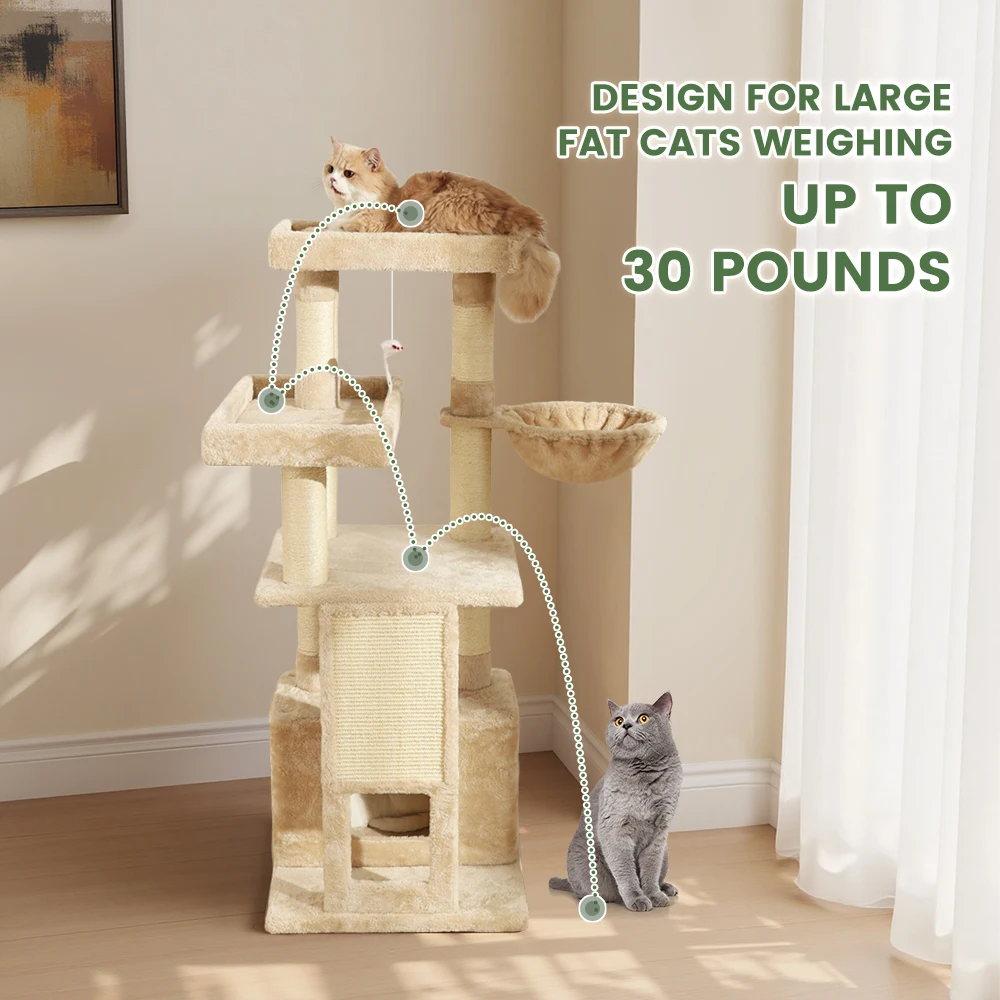 Estructura de madera contrachapada de calidad profesional, estable y duradera.¡Dile adiós a las hojas baratas!El esqueleto central está hecho de madera contrachapada de alta calidad, que es más estable y resistente, y puede soportar innumerables saltos y carreras de los gatos.Proporcionar una base de juego duradera para su bebé activo es una inversión sin preocupaciones y con valor agregado.