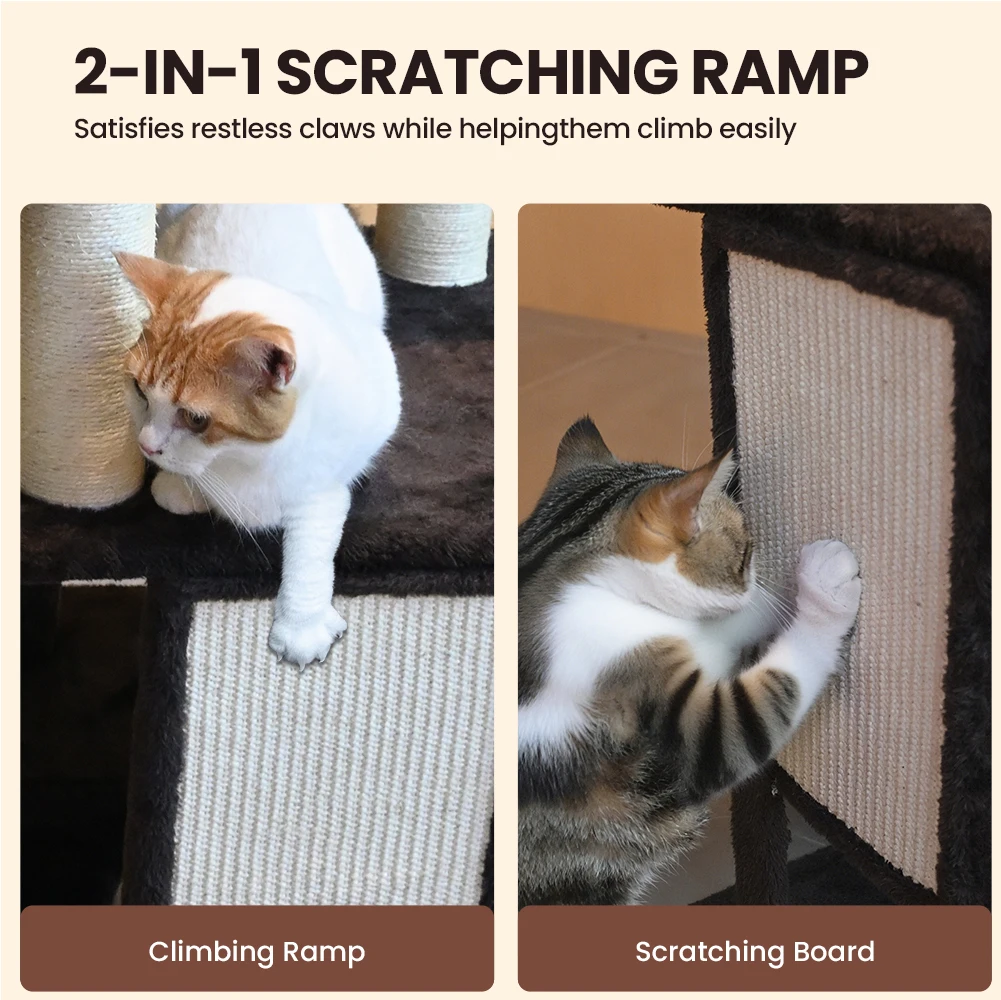 Intrincadamente diseñado para divertirse: ¡energiza a tu gato todos los días! Las plataformas de salto y las rutas de exploración cuidadosamente colocadas estimulan completamente la curiosidad y el ejercicio de su gato. Aunque ahorra espacio, ¡la diversión no disminuye! Deje que su gato haga ejercicio en un ambiente divertido y manténgase saludable y enérgico.