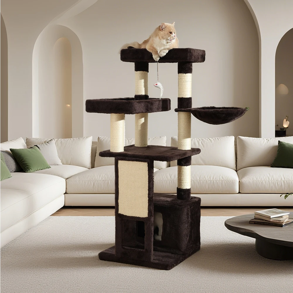 Estructura de madera contrachapada de calidad profesional, estable y duradera.¡Dile adiós a las hojas baratas!El esqueleto central está hecho de madera contrachapada de alta calidad, que es más estable y resistente, y puede soportar innumerables saltos y carreras de los gatos.Proporcionar una base de juego duradera para su bebé activo es una inversión sin preocupaciones y con valor agregado.