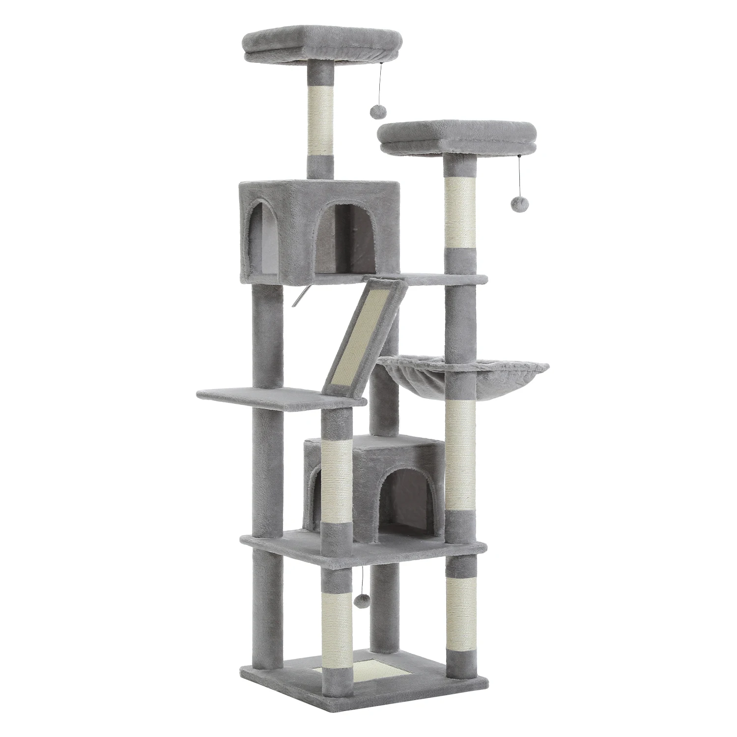 Parque infantil para gatos de varios niveles:Diseñada con múltiples niveles, esta torre para gatos de 70, 9"/180 cm de alto proporciona un amplio espacio vertical para que sus gatos exploren y satisfagan sus instintos naturales y sus necesidades de actividad.Este árbol para gatos cuenta con 6 postes para rascar, 2 tablas para rascar, 2 pompones, 2 condominios, 1 hamaca y 2 perchas, para satisfacer las diversas necesidades de varios gatos simultáneamente.