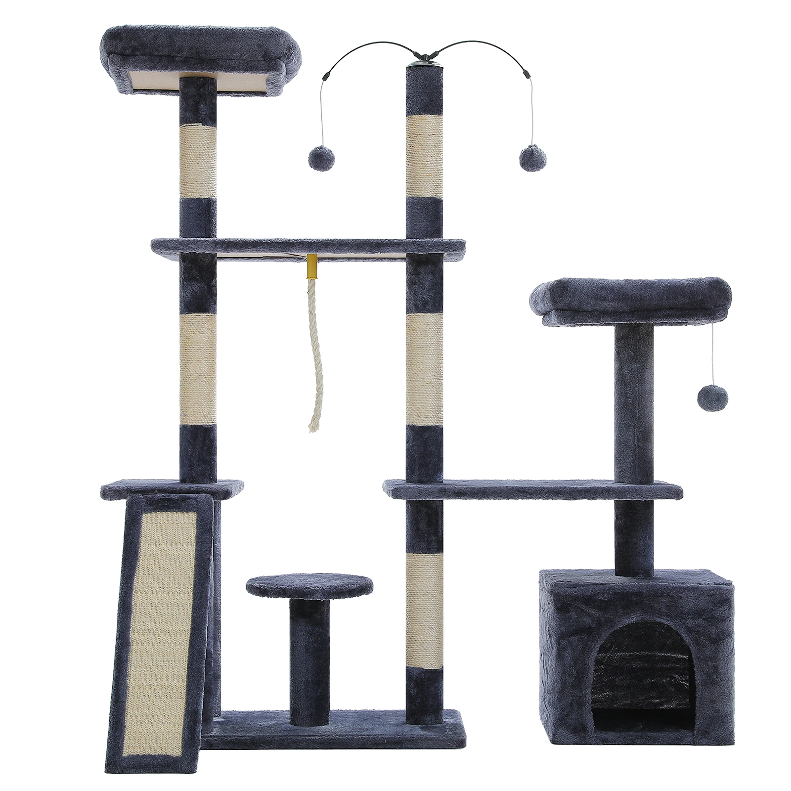 1.Torre de árbol para gatos de lujo de varios niveles, adecuada para familias de varios gatos.Tiene capacidad para 3-4 gatos al mismo tiempo.
