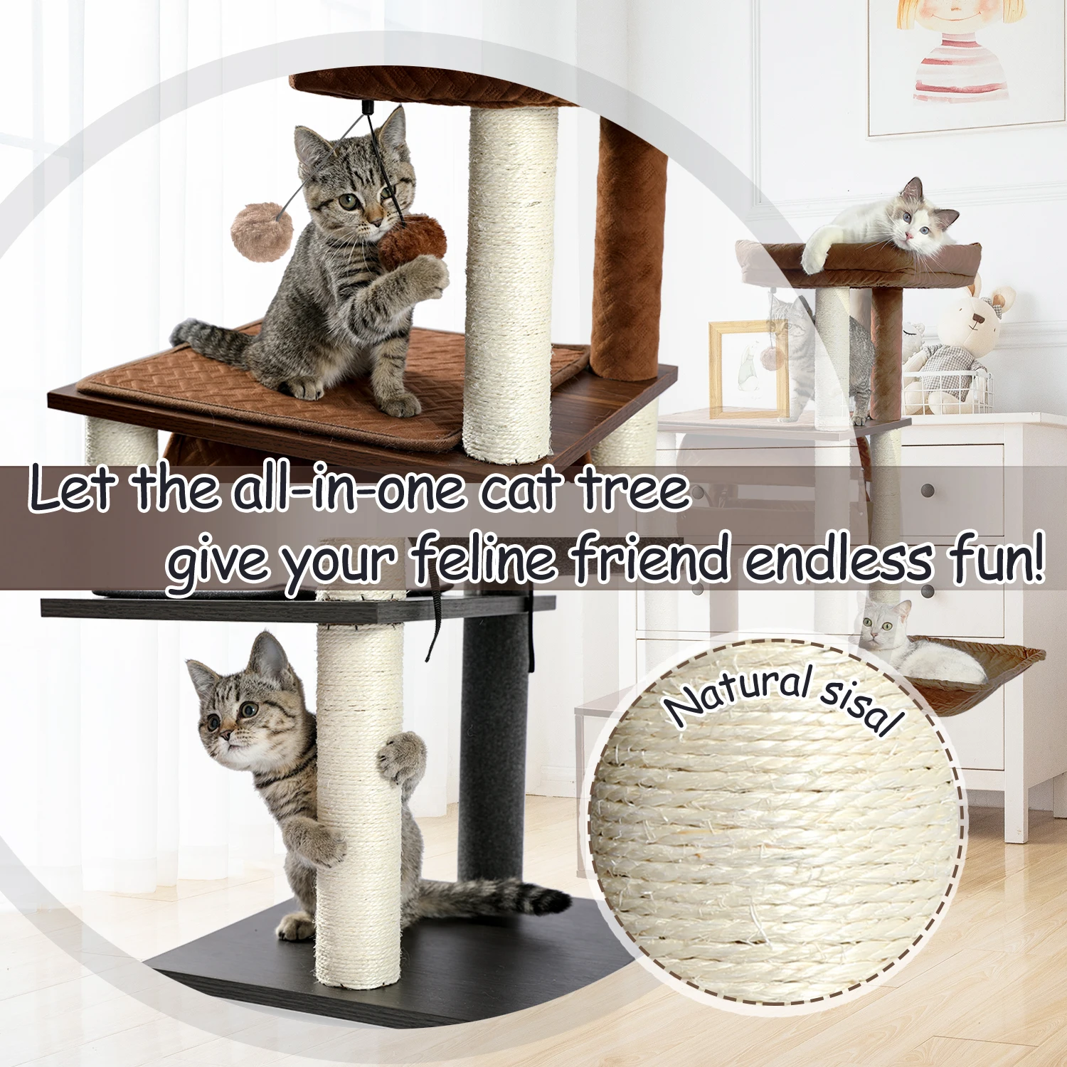 Entrega doméstica H182cm Cat Tree Tower muebles de condominio Scratch Post juguete de salto de gato con escalera para casa de gatitos juego de mascotas