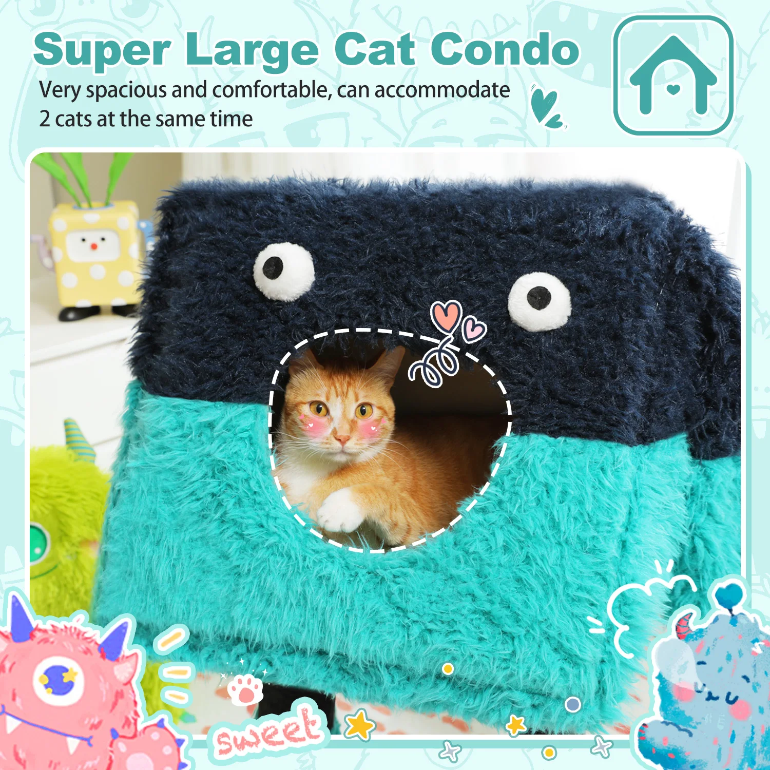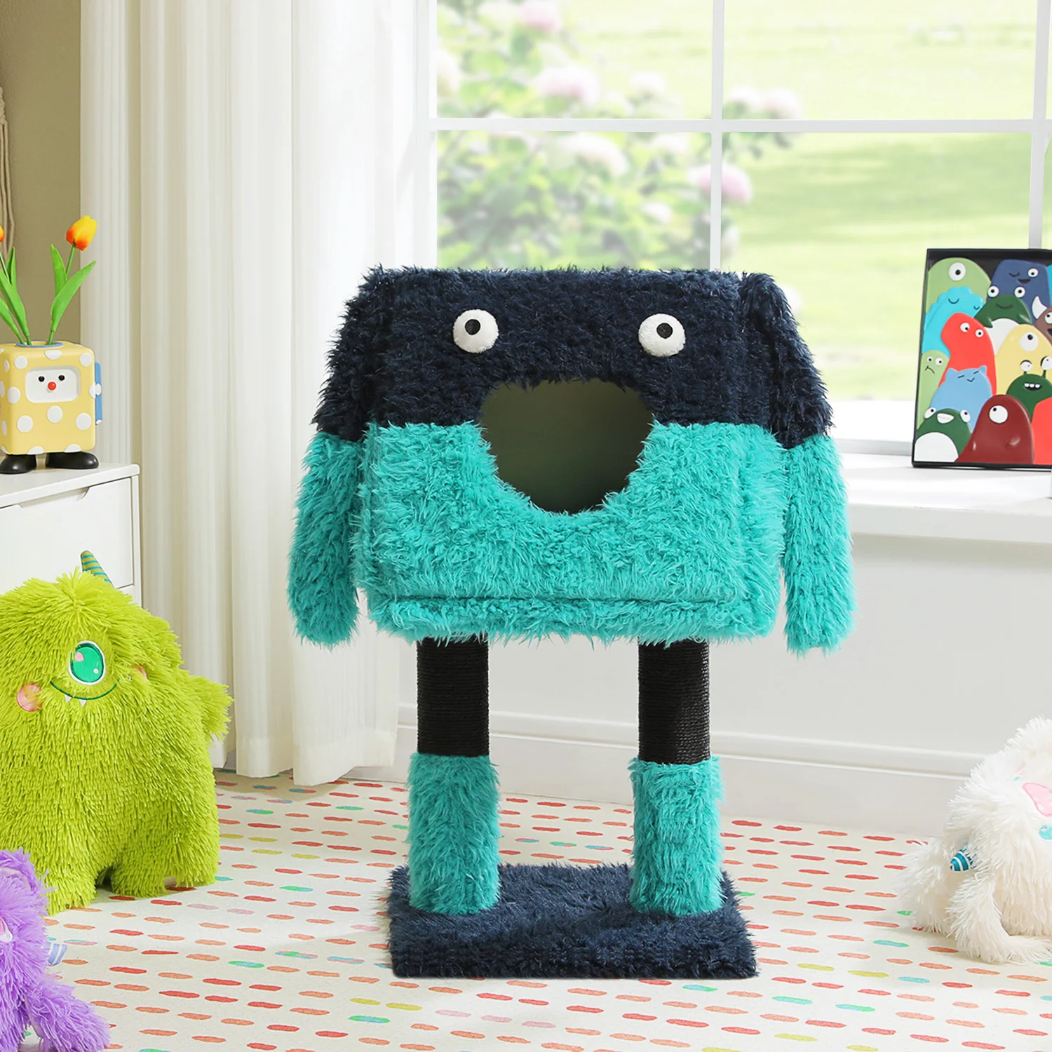 Torre de árbol para gatos de la serie Monster, modelado de felpa de forma linda con gato grande, patas envueltas en sisal, base sólida, orejas y ojos divertidos