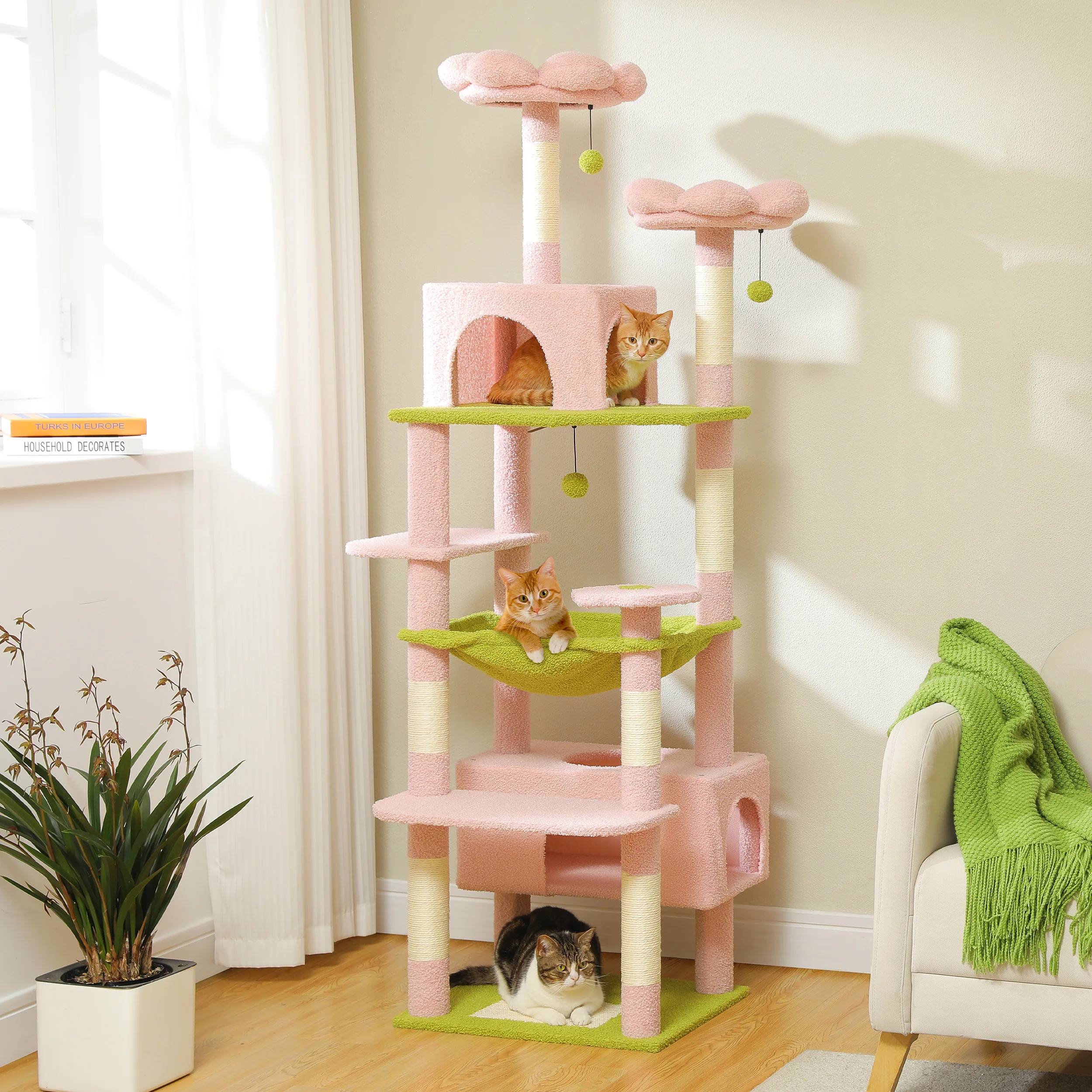 Diversión de escalada sin fin:Con una altura total de 72" en una estructura de 8 niveles, el árbol para gatos súper grande es perfecto para 4-5 gatos grandes que aman subir y bajar juntos.¡Las necesidades de rascarse, escalar, dormir y hacer ejercicio también pueden satisfacer plenamente!Especialmente el exclusivo condominio rectangular para gatos súper grande y la hamaca ancha son mucho más grandes que las normales y perfectos para que los gatos descansen juntos.