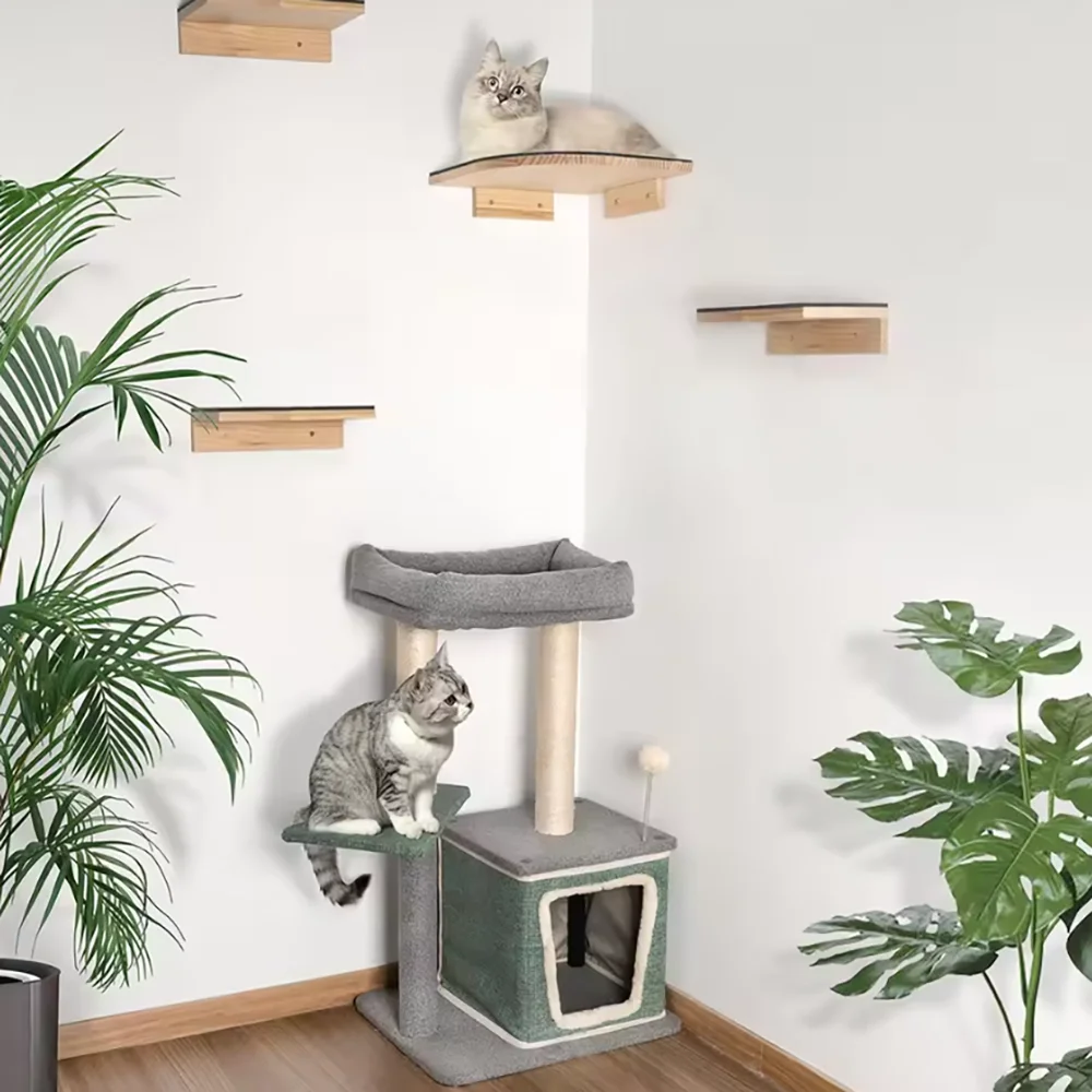 Torre de árbol de madera para gatos, estantes de escalada montados en la pared para gatos, hamaca, escaleras, casa, gatos, paseo, parque infantil, muebles para mascotas, accesorios