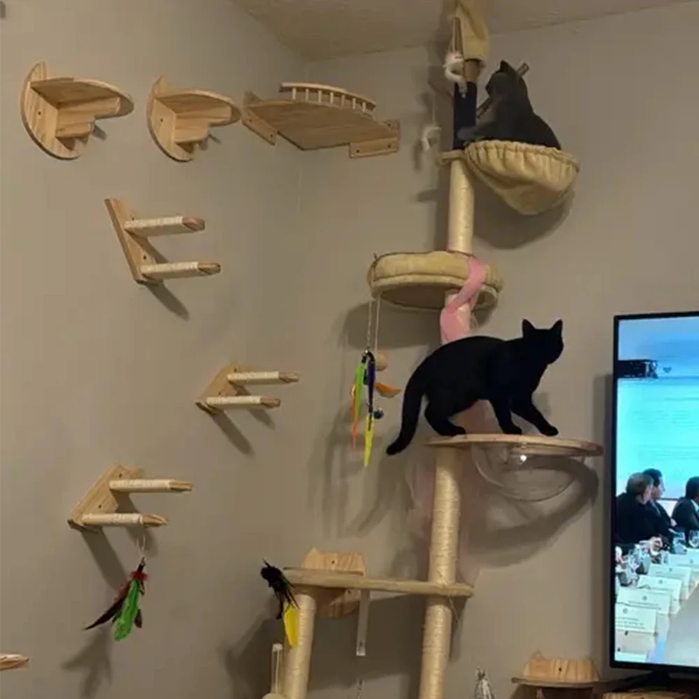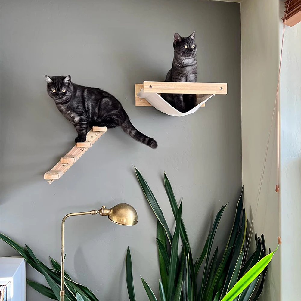 Torre de árbol de madera para gatos montada en la pared, muebles de interior, hamaca de actividad de descanso para gatos, poste de rascado para gatos, ejercicio para mascotas