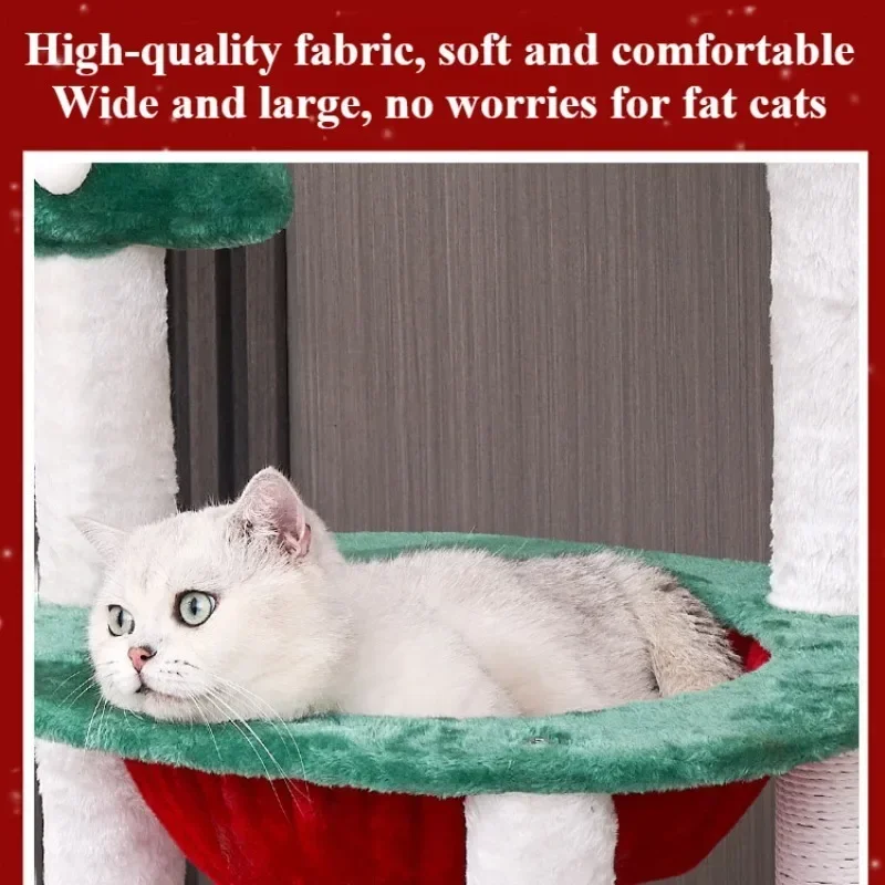 【DIVERSIÓN DE NIVEL MÚLTIPLE】 El árbol navideño para gatos mide 43,3 pulgadas de alto y puede acomodar varios gatos jugando o descansando al mismo tiempo.Con un amplio espacio para actividades, sus gatitos y gatos adultos pueden dar rienda suelta a sus instintos naturales para rascarse, trepar, jugar, hacer ejercicio y dormir, mantenerse contento.