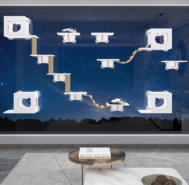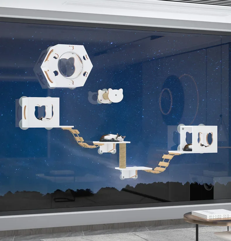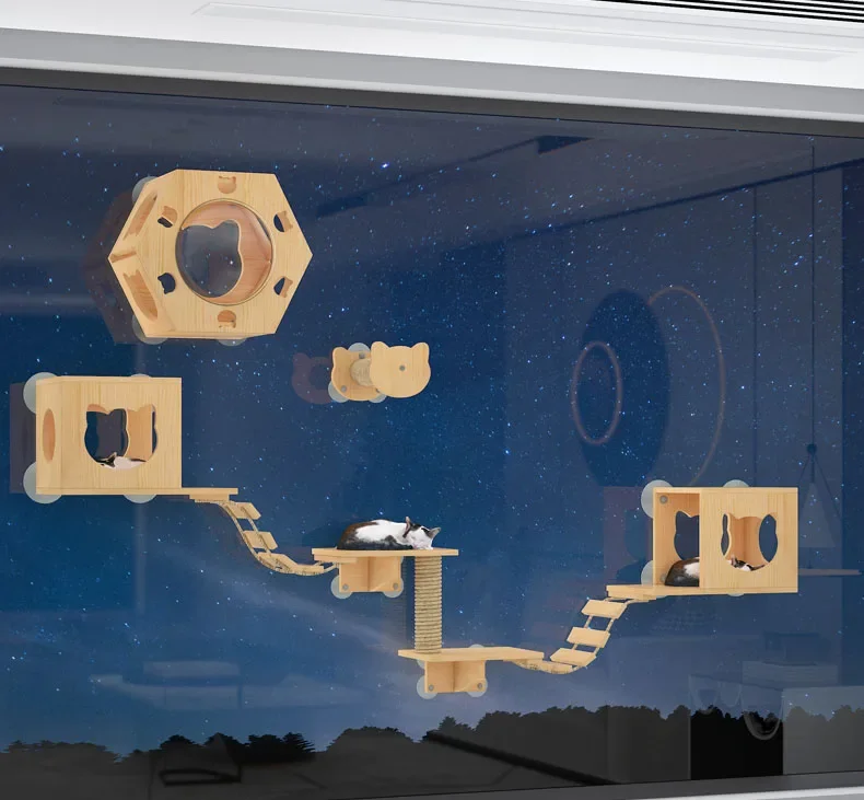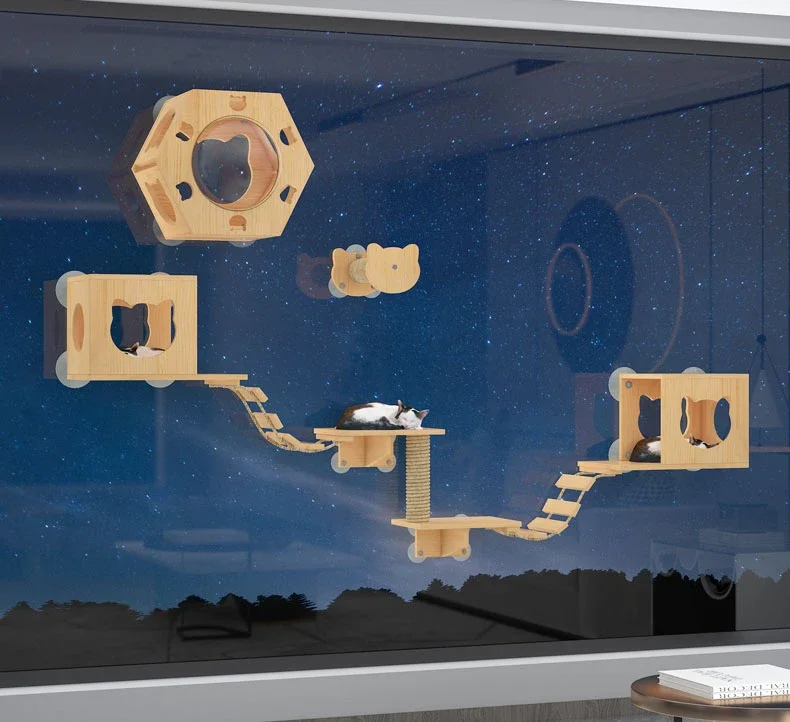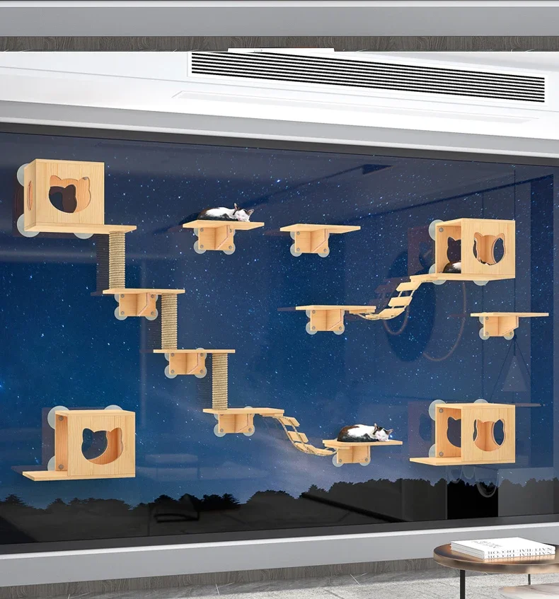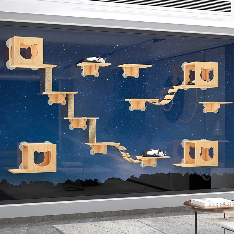Torre de condominio para gatos, juguete de árbol sin perforación, poste para rascar, plataforma, productos para mascotas para gatitos, ventosa de madera maciza, juego para gatos, marco de escalada