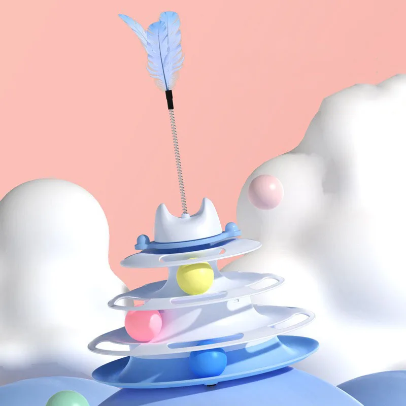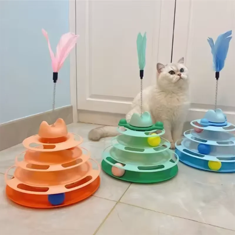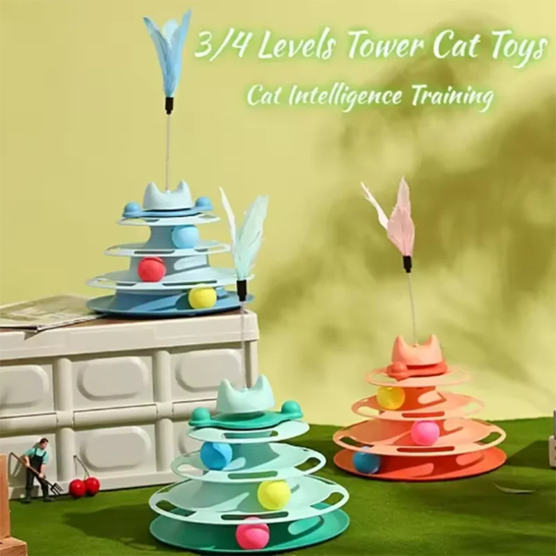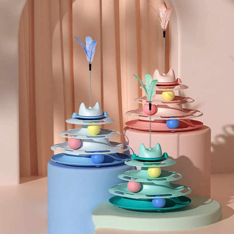 Torre de juguete interactiva para gatos, plato giratorio para gatitos, bolas con rodillo, juguetes con plumas, suministros para mascotas, juguete para torre para gatos