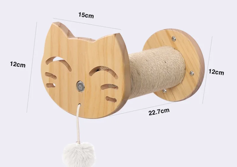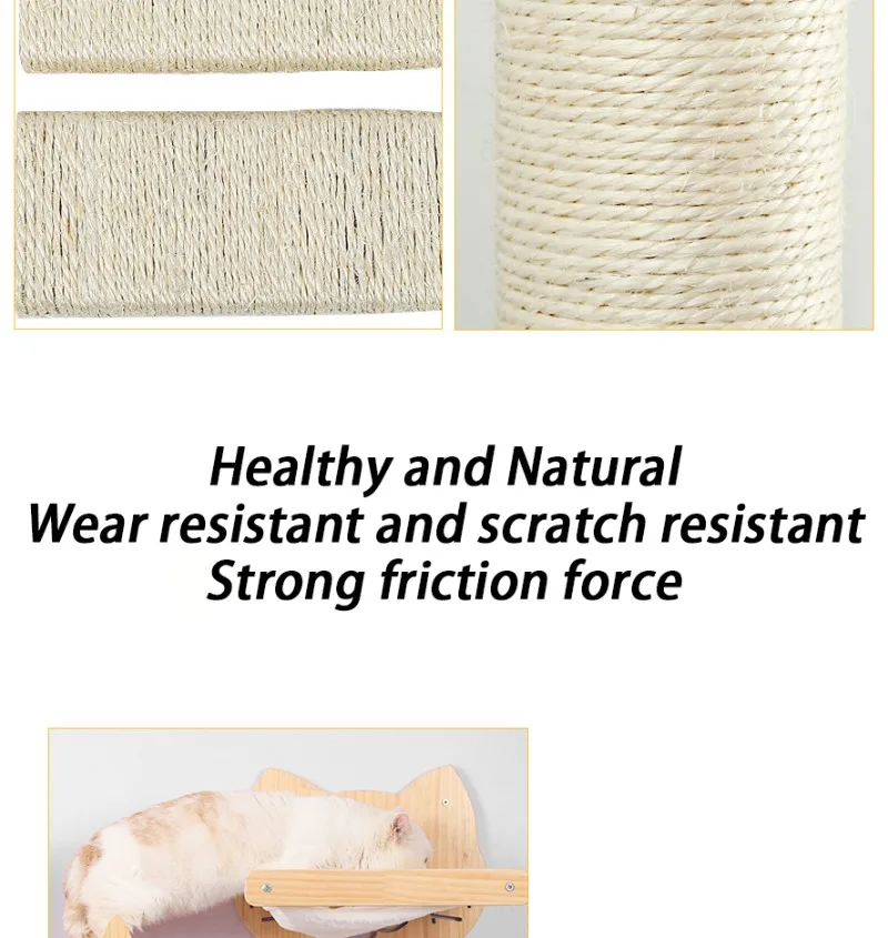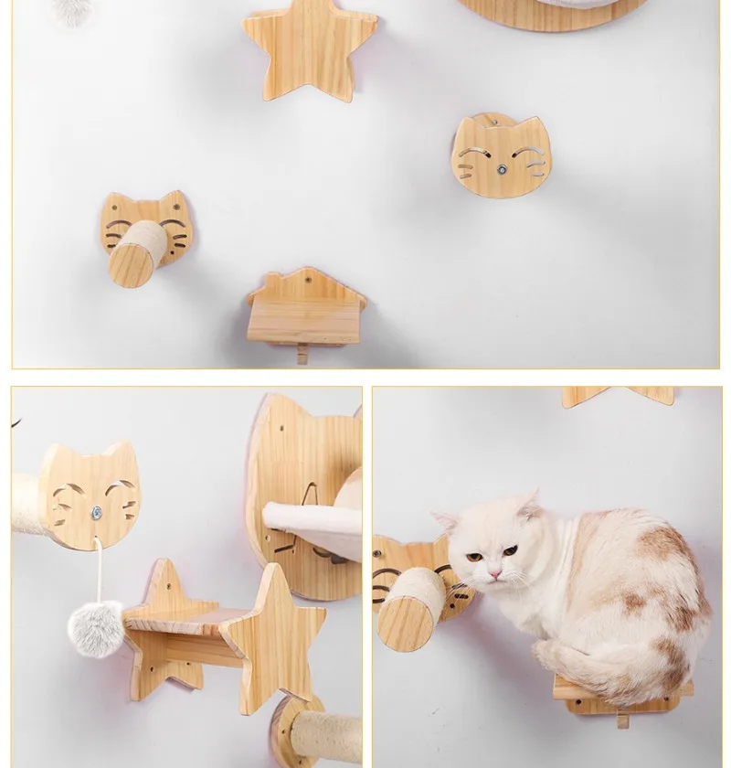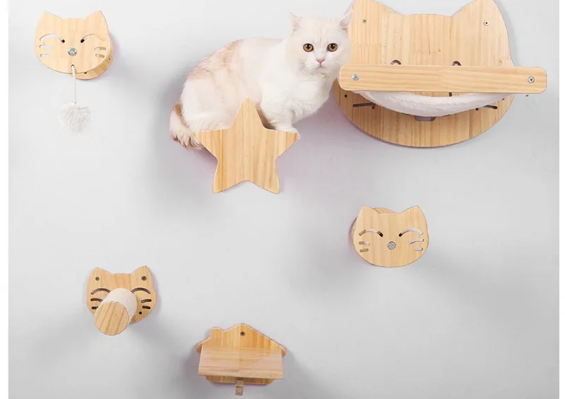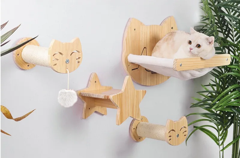 Torre de madera de pino para gatos, poste rascador montado en la pared, hamaca de Sisal para gatos, juguetes interactivos, marco de escalada en pared, muebles, suministros para mascotas