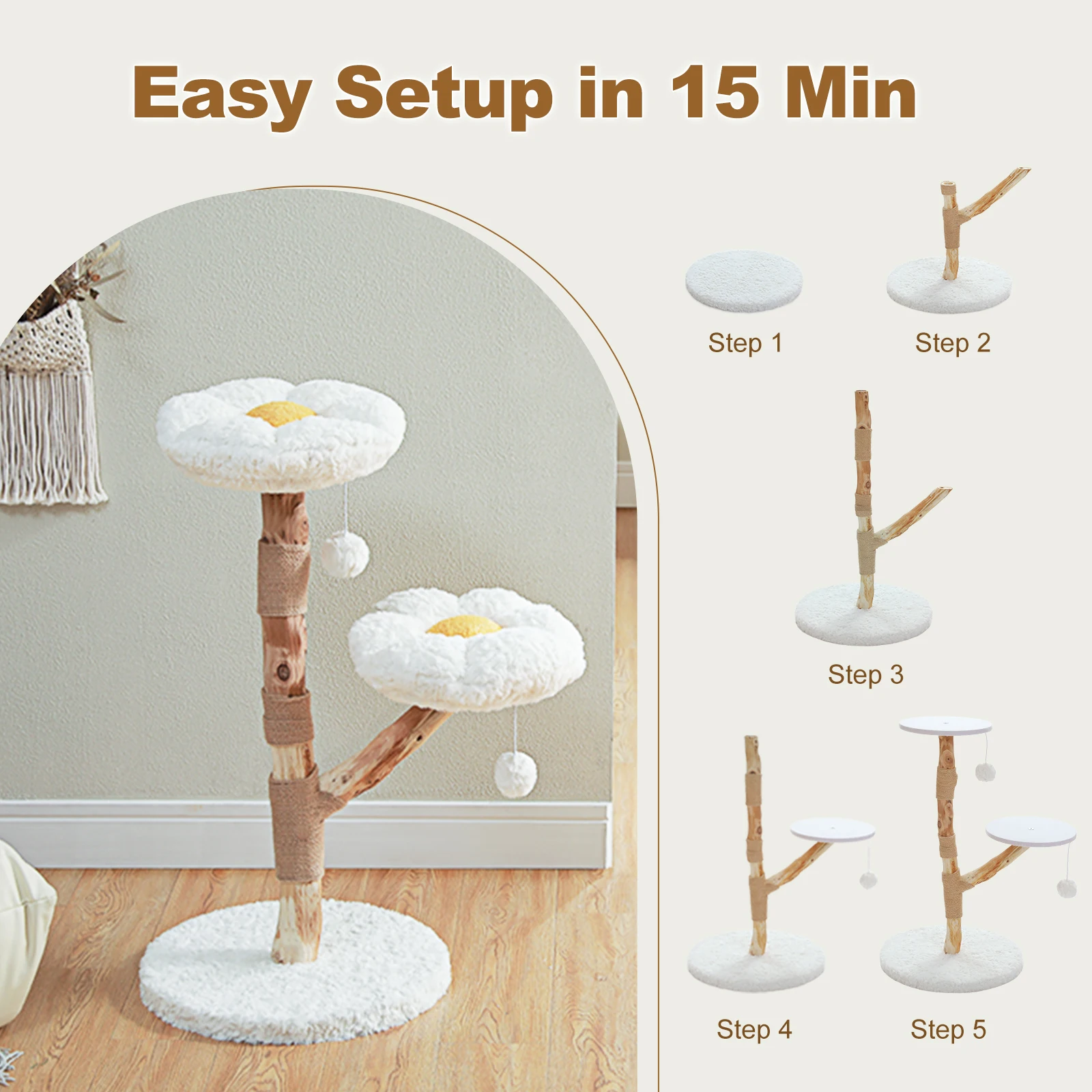 Madera maciza y hecha para durar:La base, con tablas de madera de doble espesor, garantiza la estabilidad del árbol para gatos.Todos los postes están hechos de tronco de madera natural diseñado para durar años.Se pueden comprar piezas de repuesto para mantener su árbol para gatos como nuevo.La colchoneta extraíble se puede lavar a máquina y el resto se puede aspirar o limpiar fácilmente con un limpiador en espuma en seco.