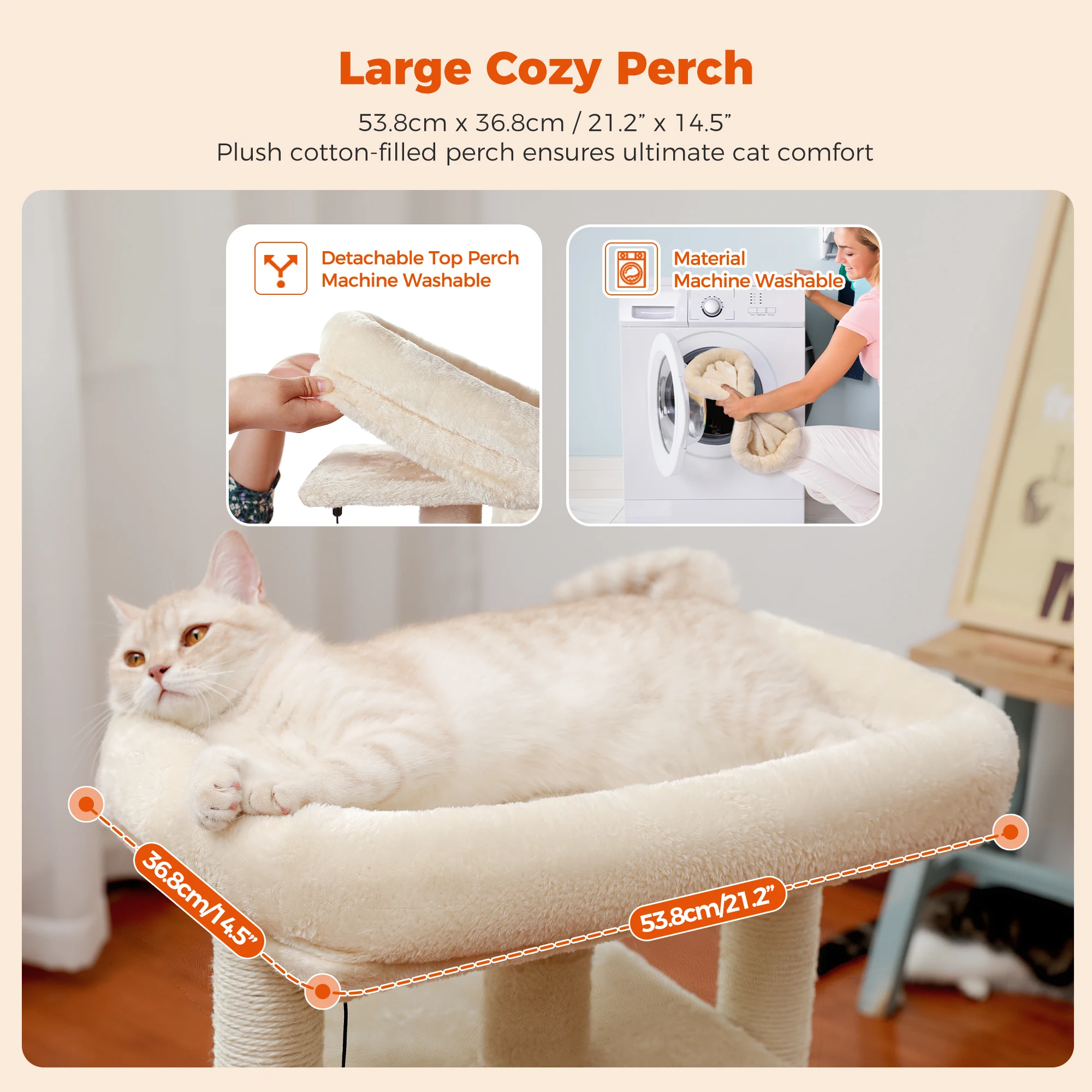 PESCA acogedora y amplia:2 percha para gatos muy bien acolchada y extragrande con borde elevado ofrece un lugar de relajación principal para que sus bebés peludos se acuesten o se sienten para mirar hacia la ventana.La percha superior está diseñada lo suficientemente grande como para contener 2 gatitos al mismo tiempo para que estos 4 buenos amigos puedan disfrutar juntos de un agradable sueño o tiempo de juego.