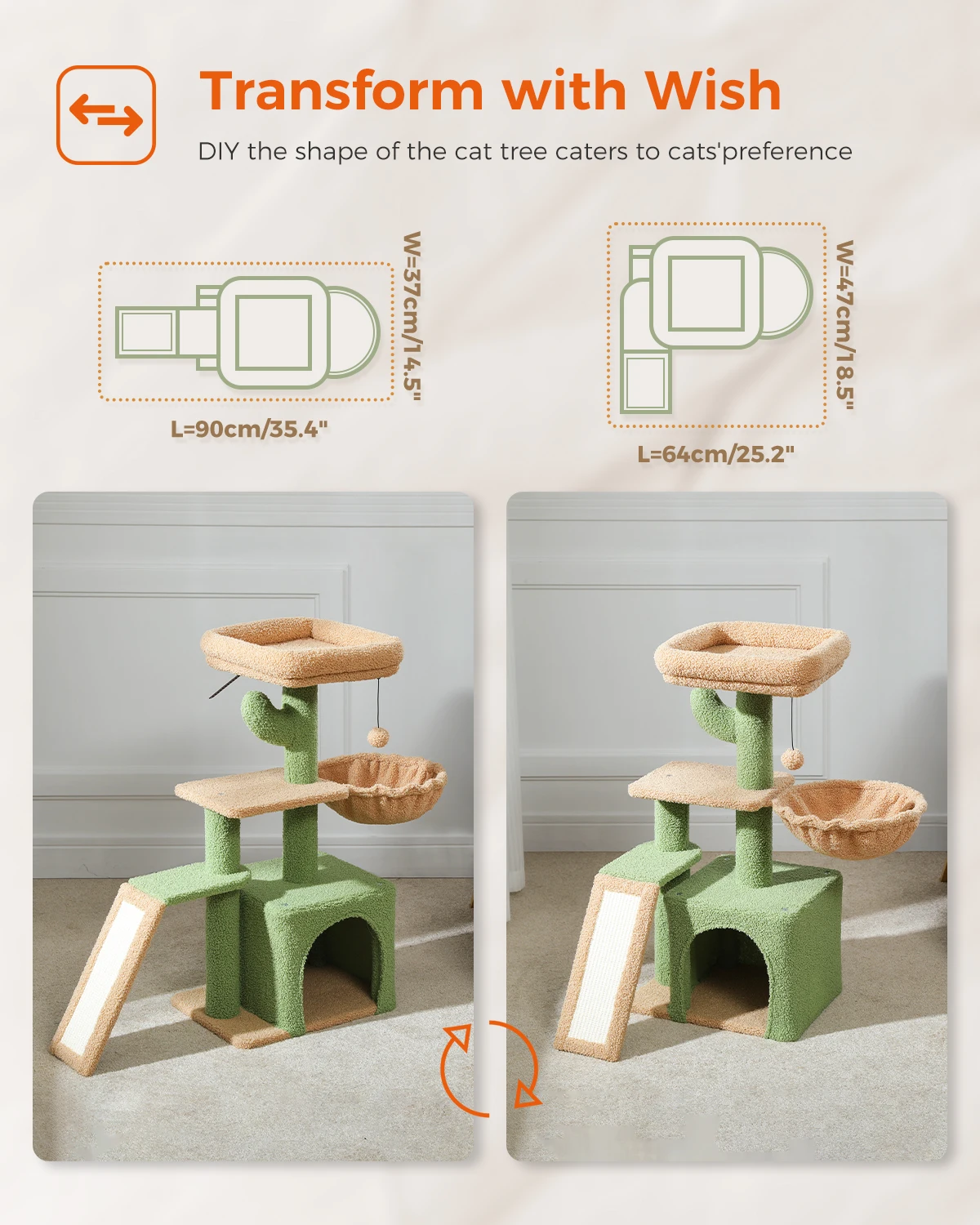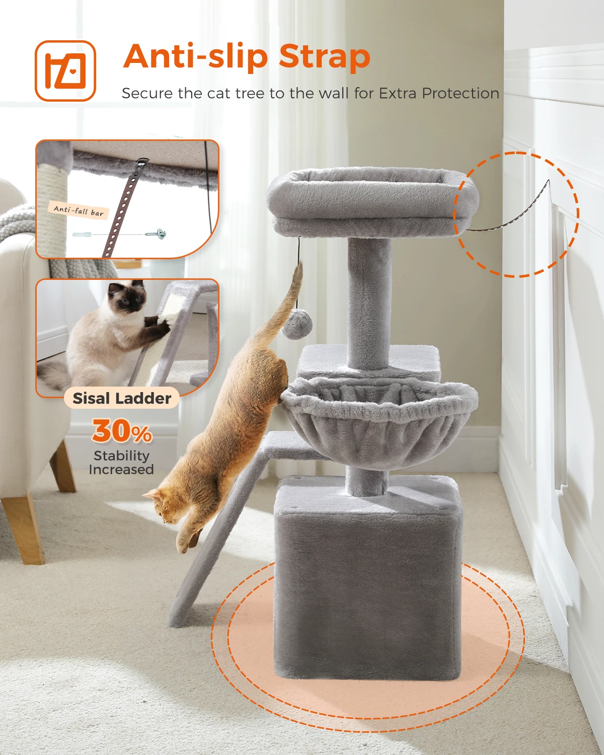 1. Diseño multifuncional: el árbol para gatos incluye rampa y poste para rascar sisal, hamaca acogedora, condominio grande para gatos con percha superior. Proporcione a su gato un lugar para jugar y descansar al mismo tiempo.