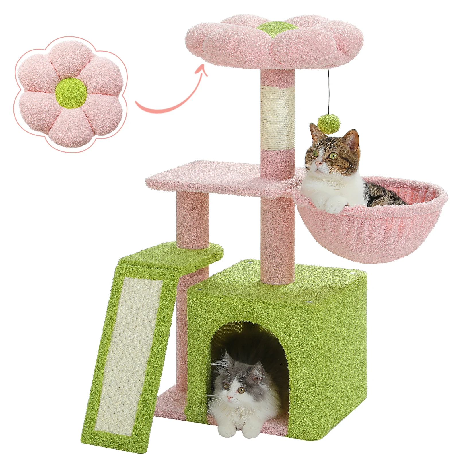 4. Condominio para gatos, hamaca y percha superior, proporciona un lugar para que los gatos descansen, y los gatos pueden elegir libremente su lugar favorito para descansar.