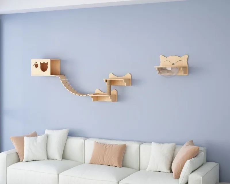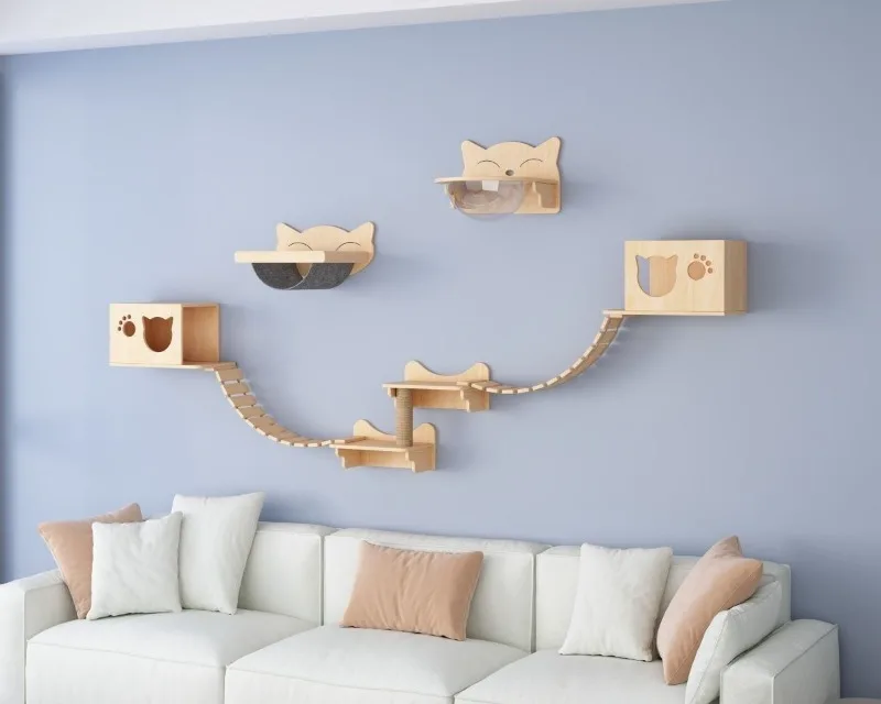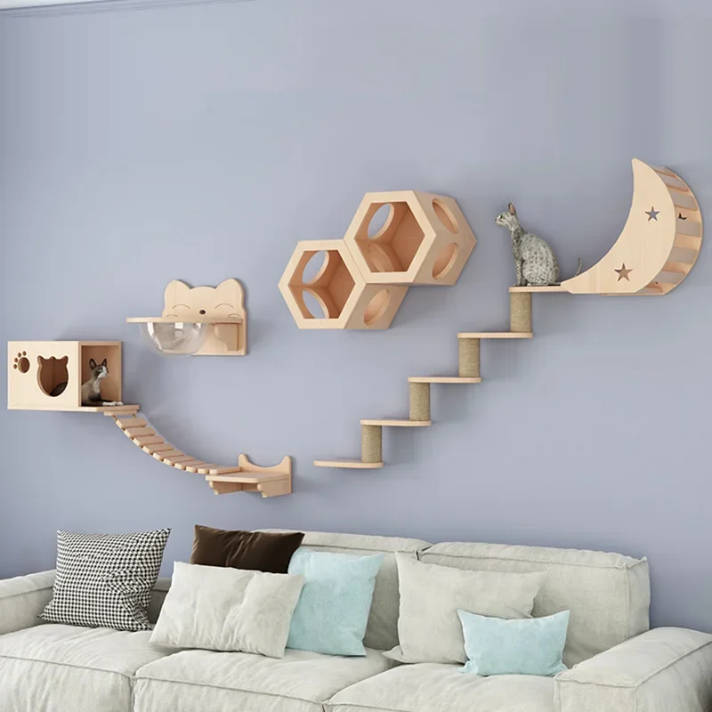 Torre raspadora de madera maciza para gatos, estante de escalada de pared, juego de bricolaje, casa de rebote, guarida, accesorios de juguetes para mascotas, productos para gatitos