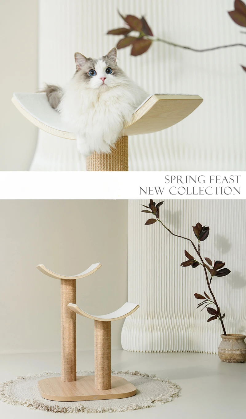 ★El trampolín de doble curva de madera curvada se adapta al cuerpo del gato, que se ajusta a la ingeniería del cuerpo del gato. Es único y práctico