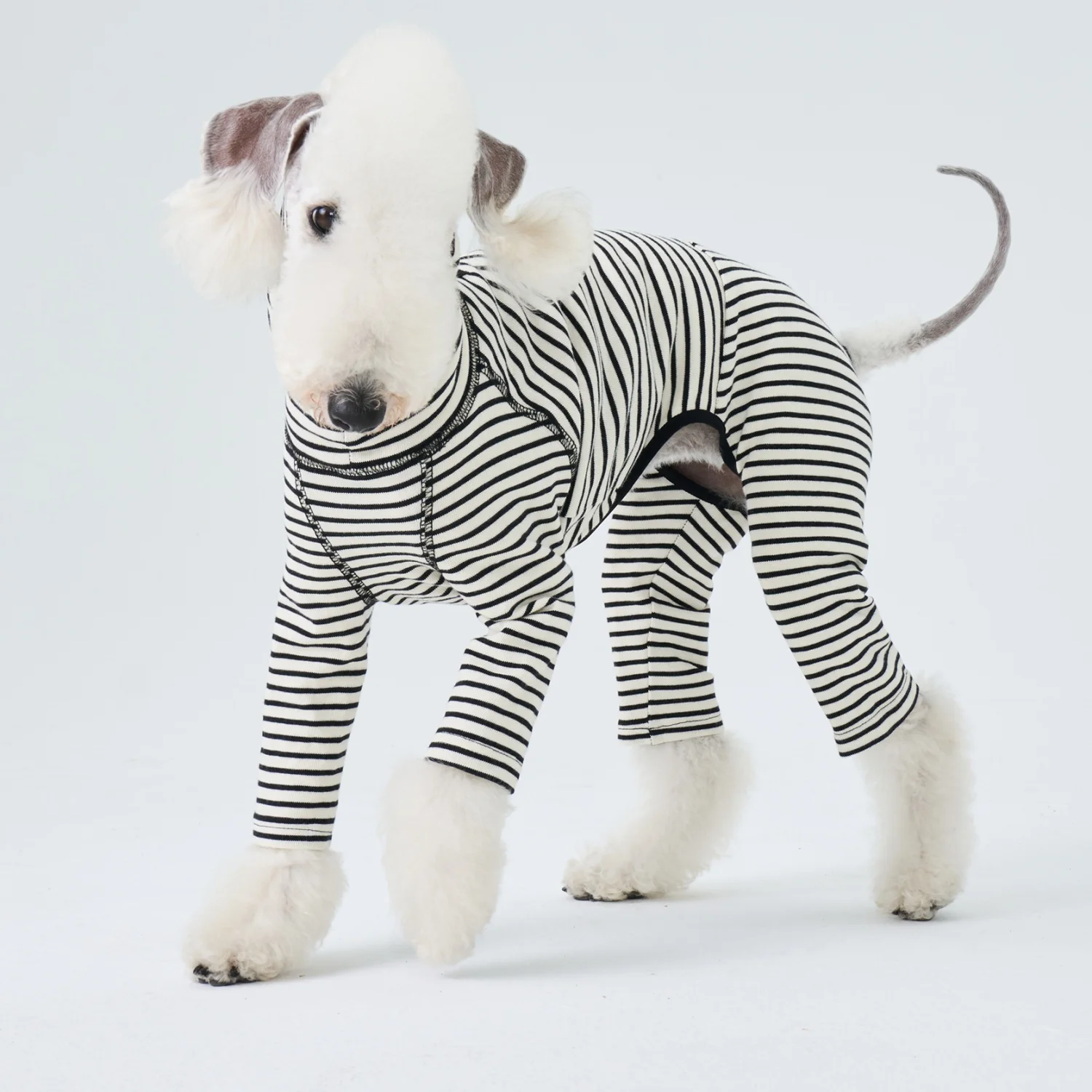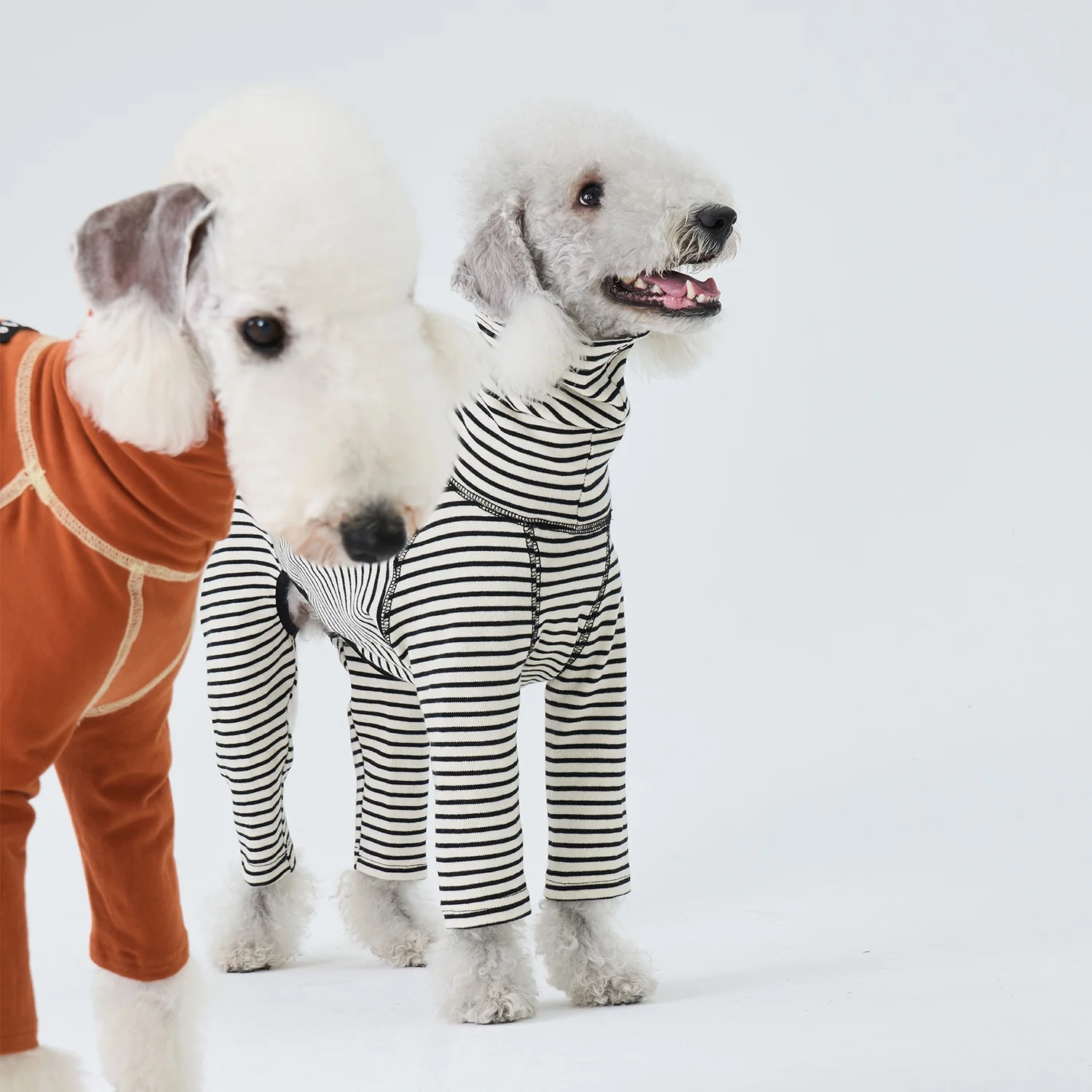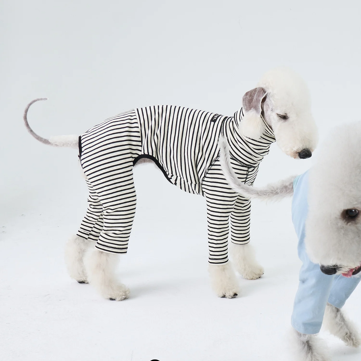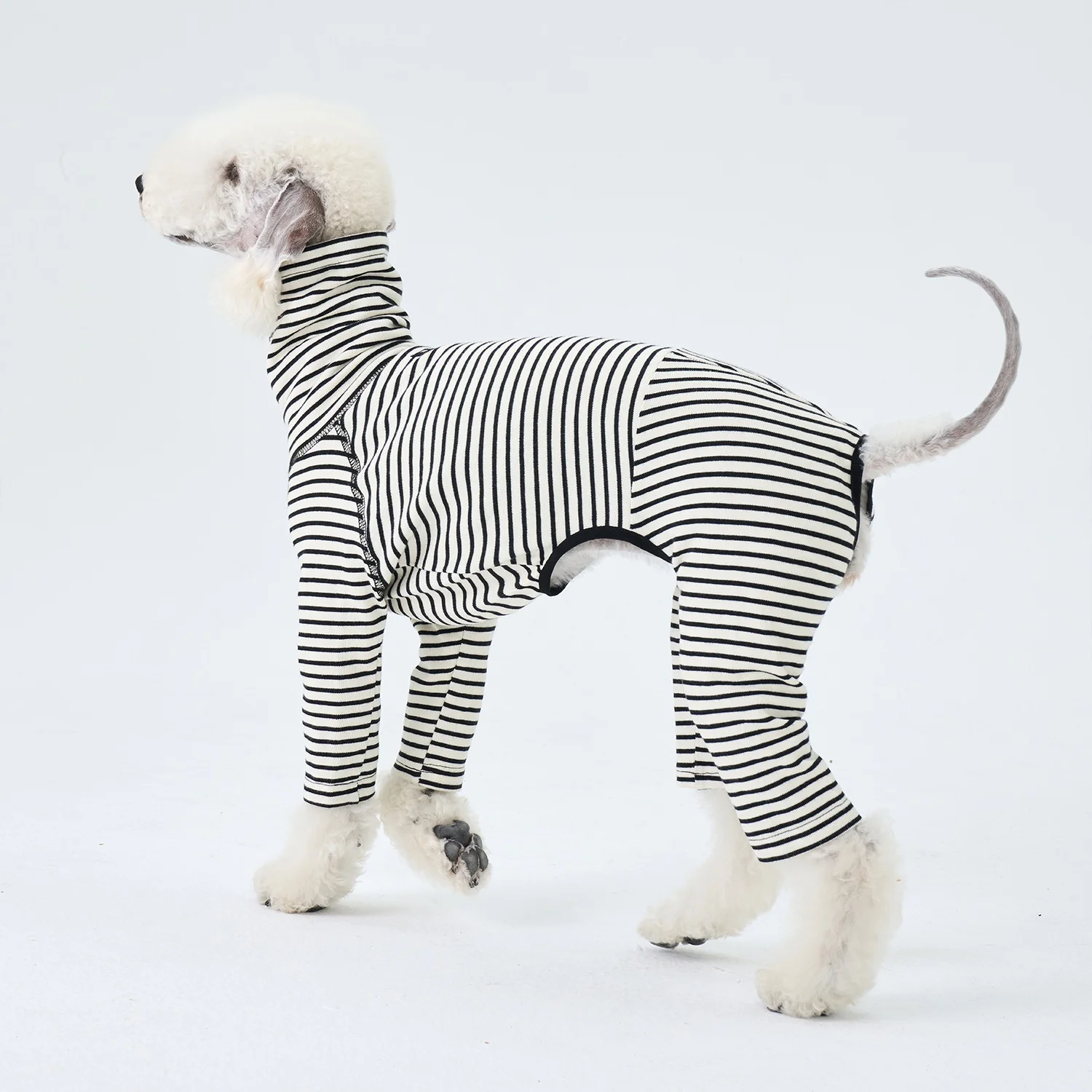 Traje de algodón de cuatro patas a rayas blancas y negras para abrigo de cuello alto para Bellington en primavera Sudadera de perros medio en otoño Camiseta interior de invierno para galgo
