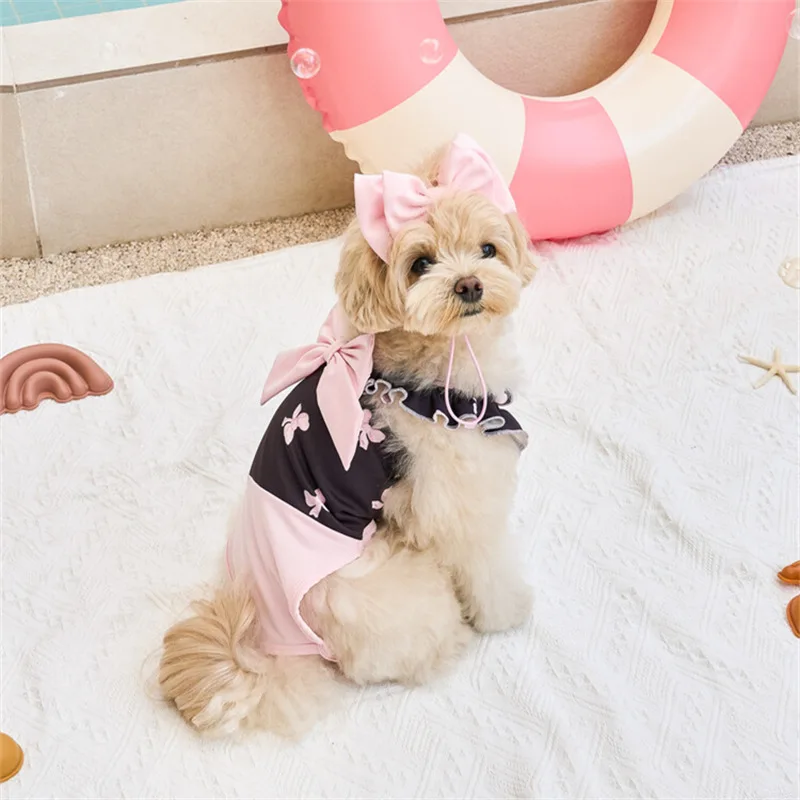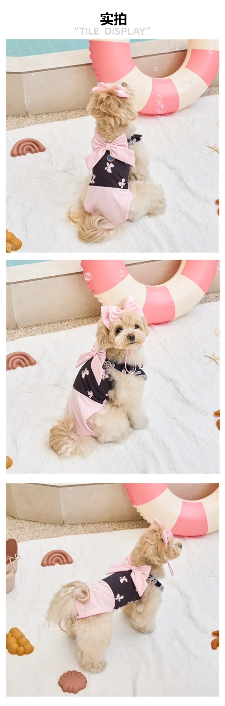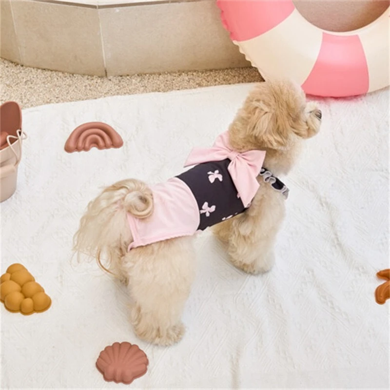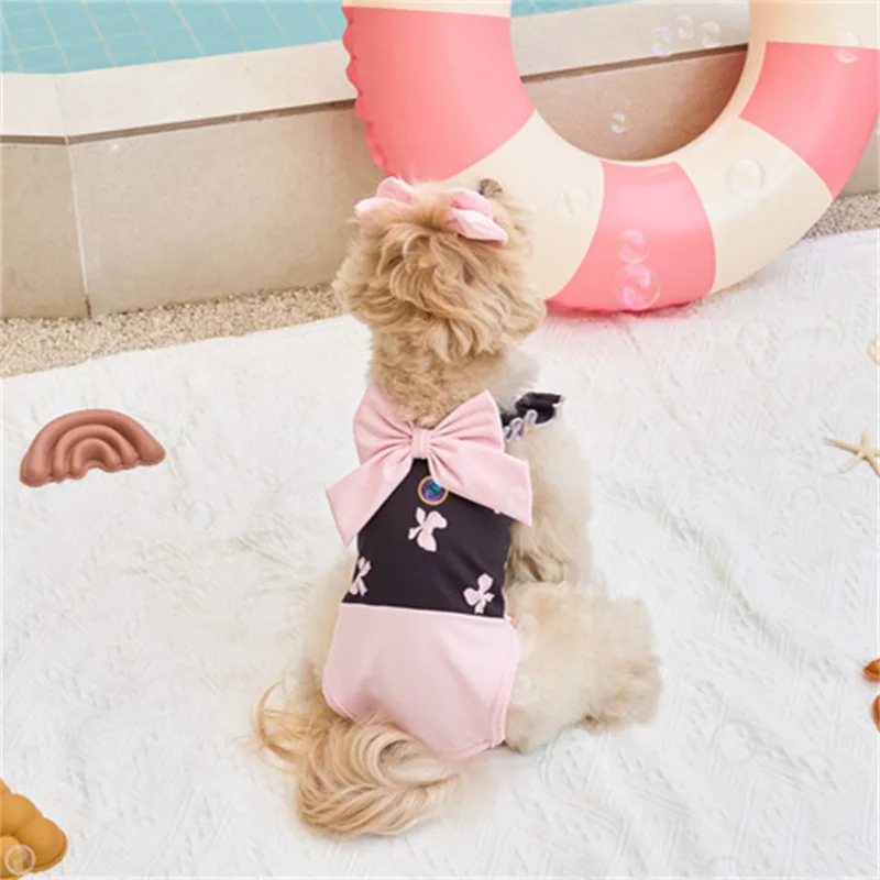 Traje de baño con estampado de lazo para primavera/verano para mascotas, mono con tirantes, traje de baño de dos piernas para gatos, Top para perros de peluche, ropa para cachorros pequeños