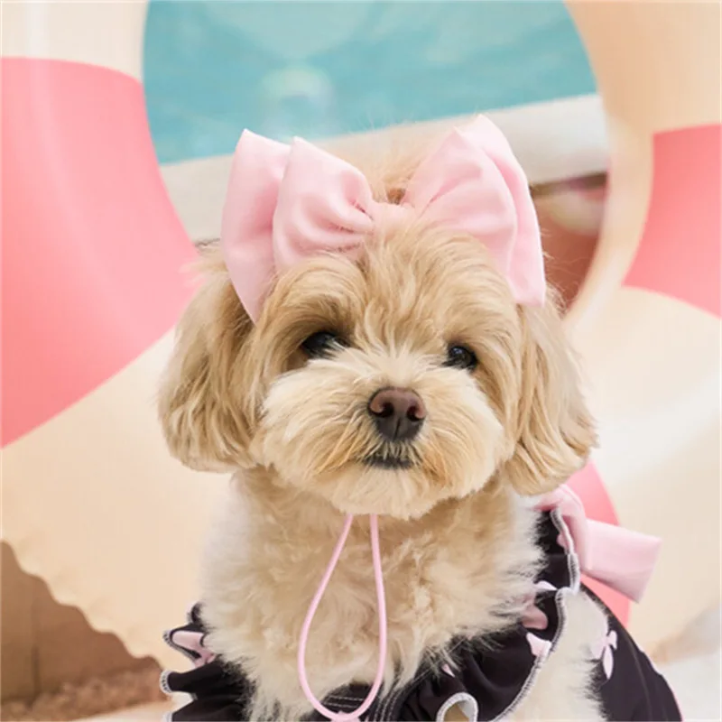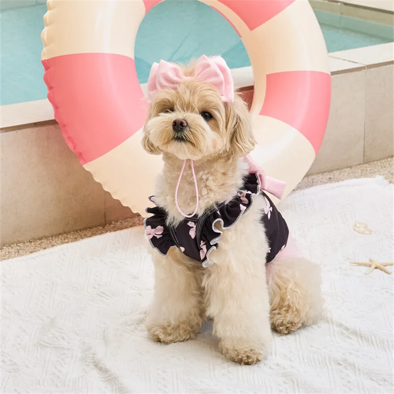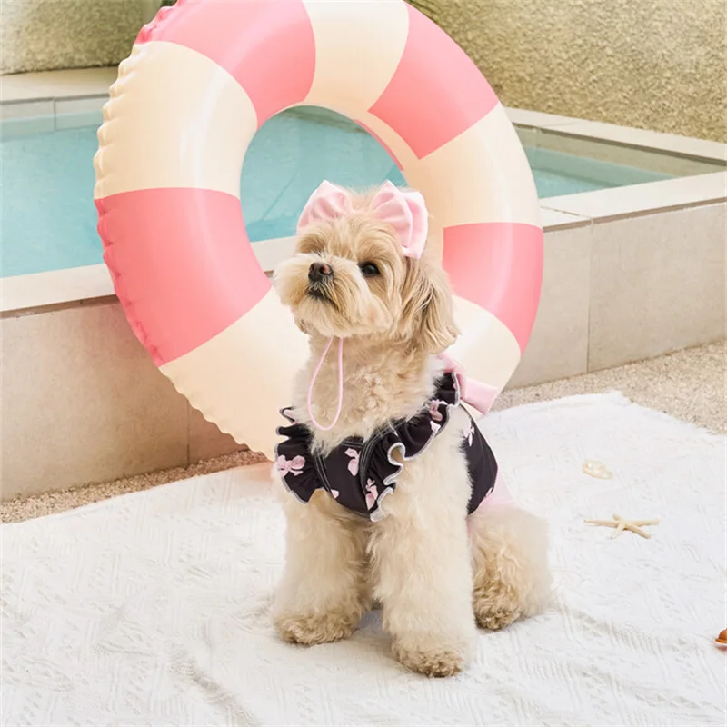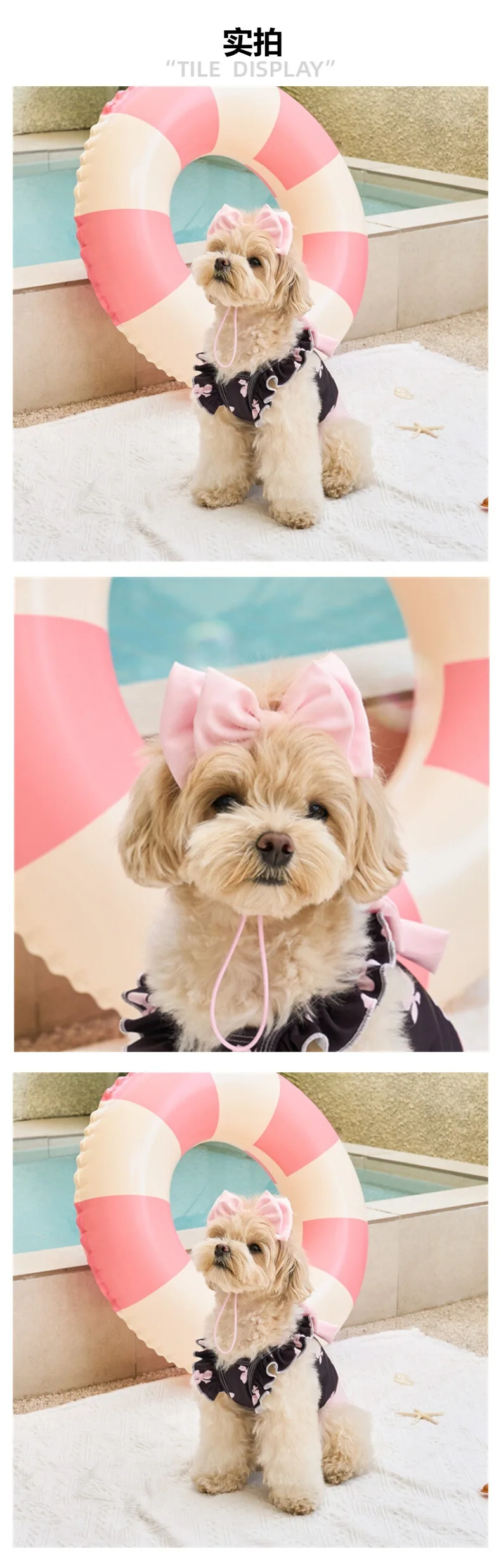 Traje de baño con estampado de lazo para primavera/verano para mascotas, mono con tirantes, traje de baño de dos piernas para gatos, Top para perros de peluche, ropa para cachorros pequeños