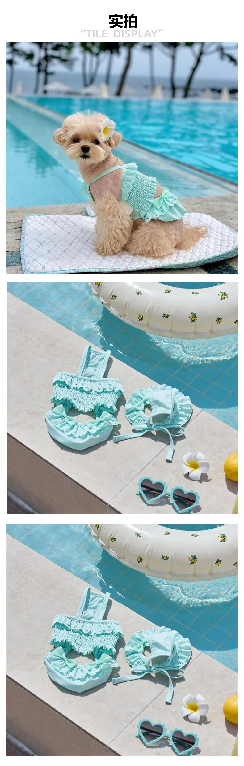 Traje de baño de verano para mascotas, 1/conjunto de ropa + gorro de baño, camisola de una pieza para gatos, chaleco para perros, traje de baño, vestidos para perros pequeños