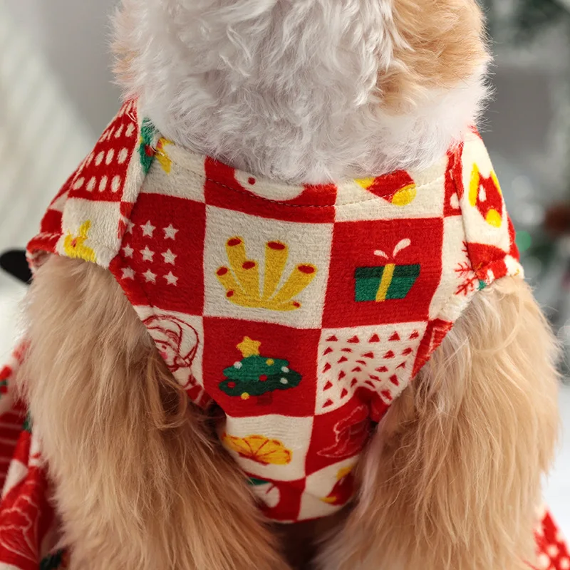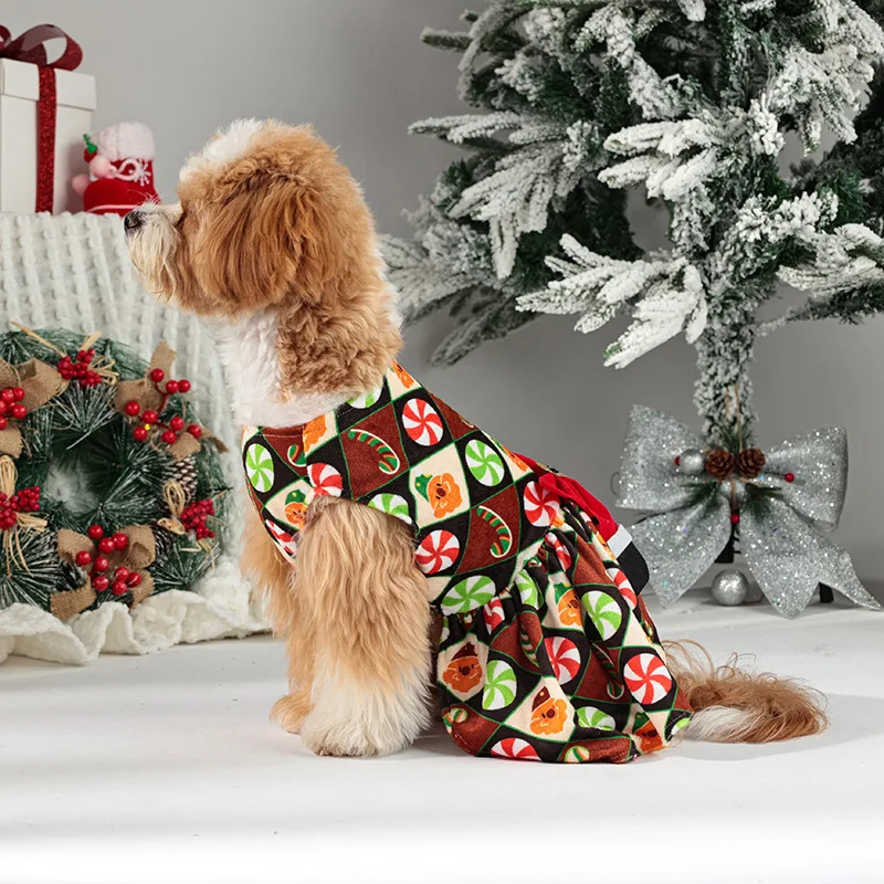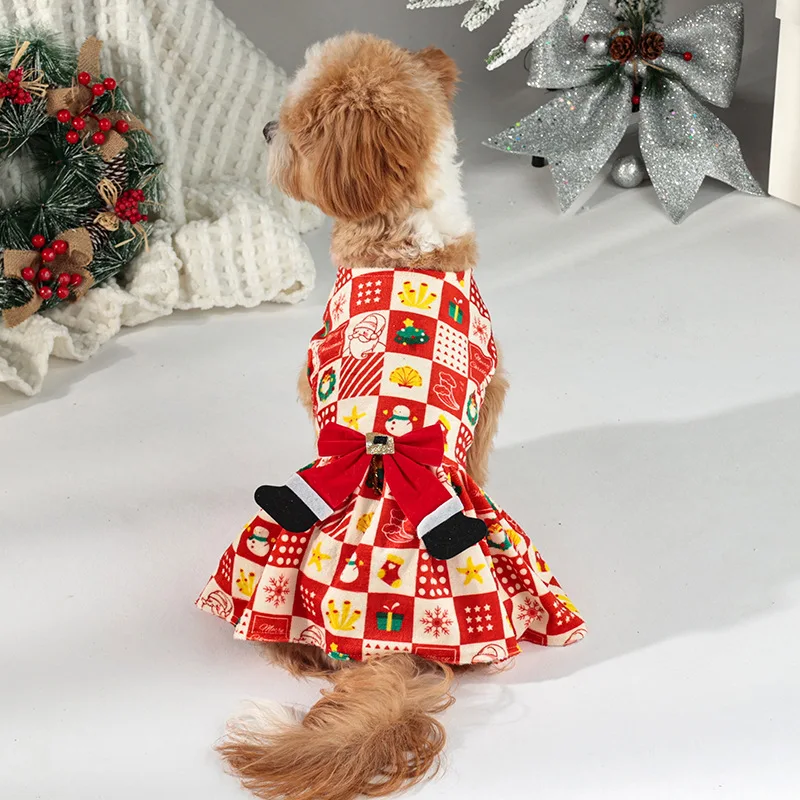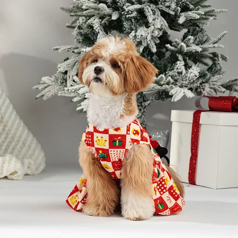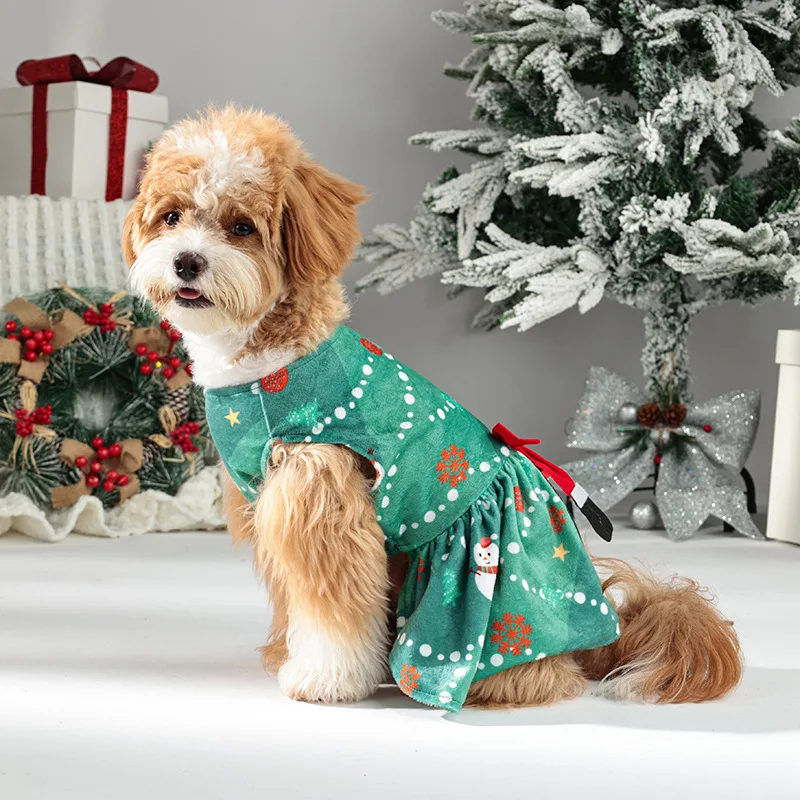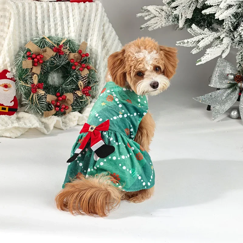 Traje cálido para mascotas para perros pequeños/medianos, vestido navideño para perros, falda de invierno de terciopelo cristalino con lazo, S–XL