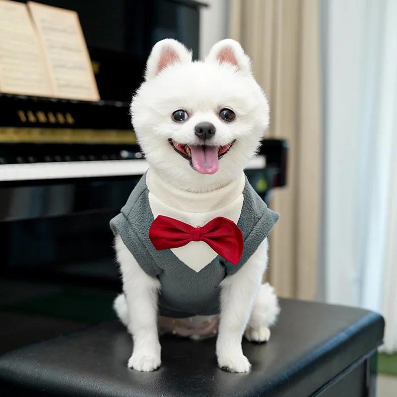 Traje Formal para mascotas, chaqueta, chaleco, ropa de esmoquin para perro y gato para fiesta de boda, chaqueta sin mangas de peluche de Bulldog Francés, Otoño Invierno, nuevo