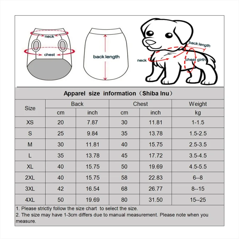5. Por lo general, Elija el tamaño midiendo el pecho, la longitud de la espalda y el cuello, no el peso o las razas simplemente. Consulte la tabla de tallas antes de comprar