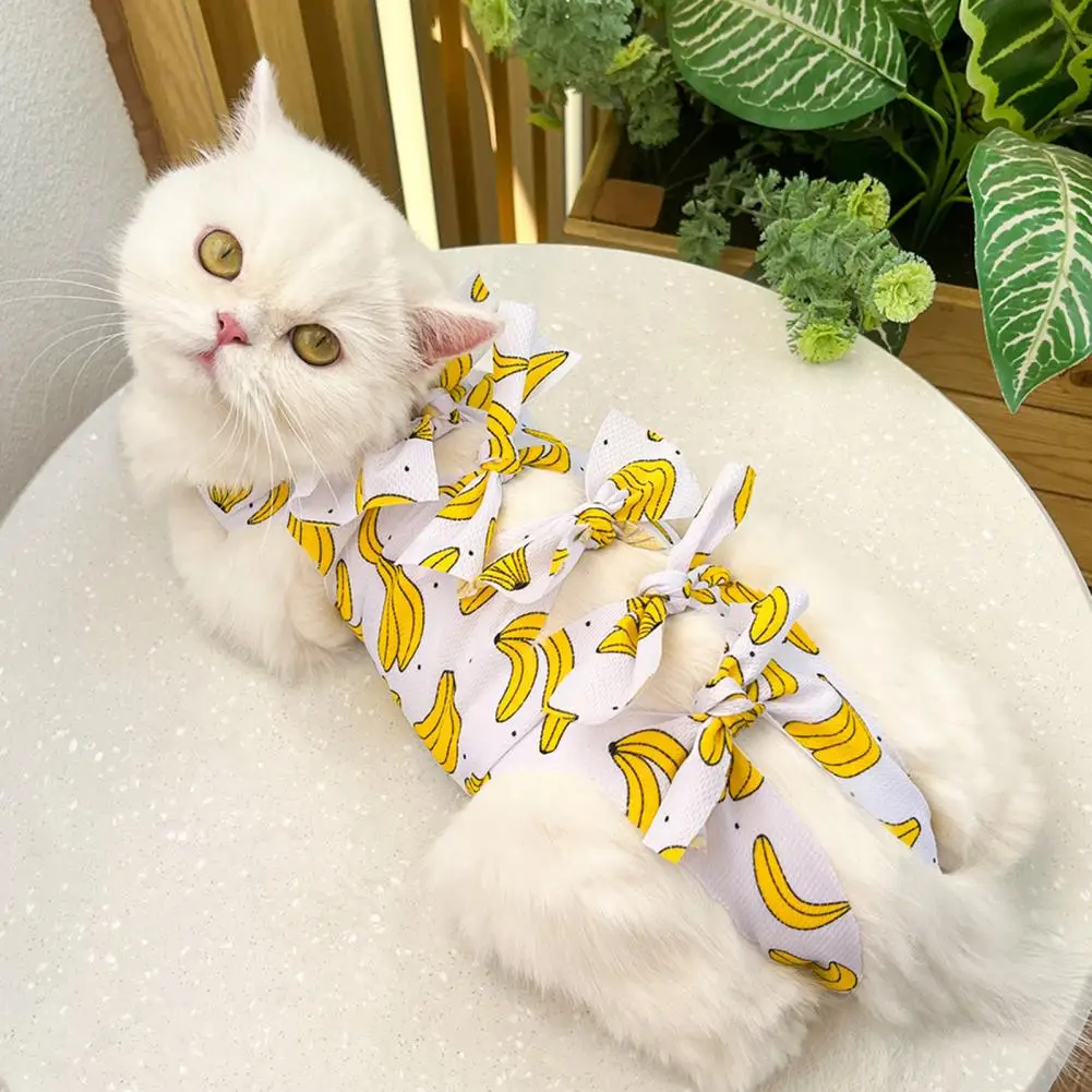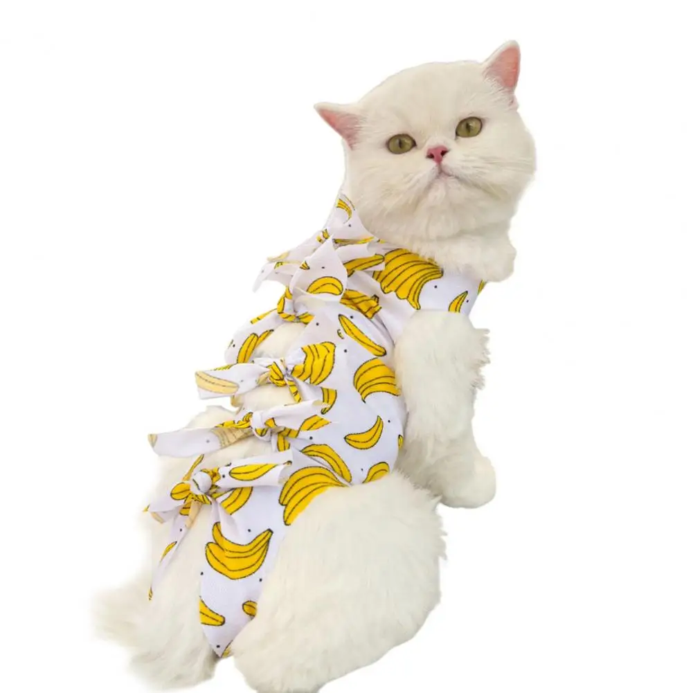Traje de neutralización para gatos Ropa de recuperación con estampado de frutas Mono antigolpes Después de la cirugía Correa ajustable Ropa de cuidado postoperatorio suave y transpirable para perros pequeños y gatos