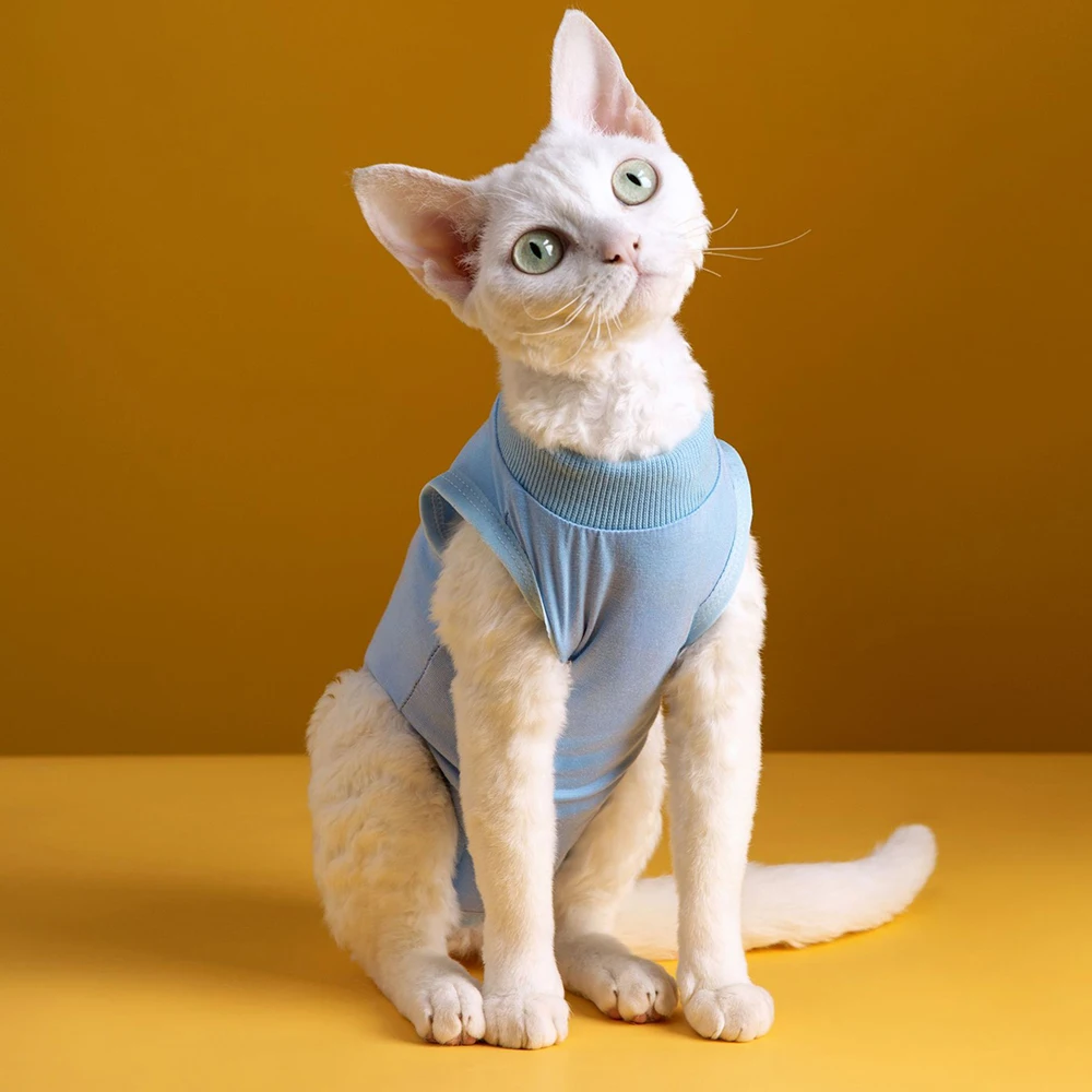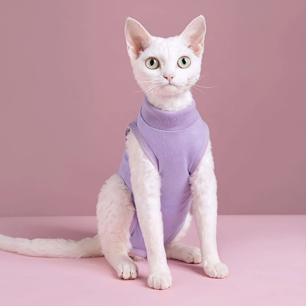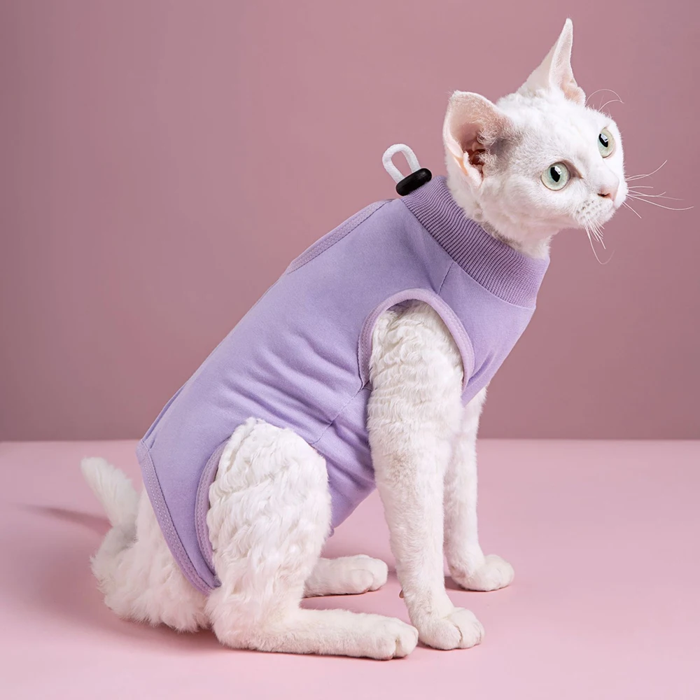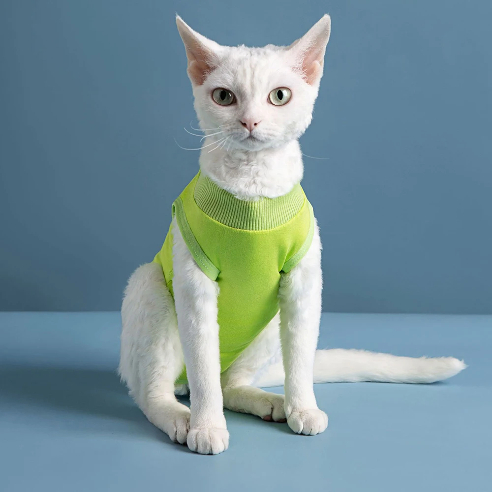 Traje de recuperación de gatos para heridas abdominales o enfermedades de la piel, mono de algodón cómodo y sólido para gatos para ropa de gatito femenino después de la cirugía