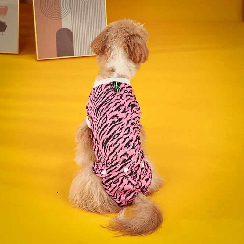 Traje de recuperación quirúrgica para perros después de la cirugía, mono suave y transpirable para perros, mono para hombre y mujer, mono anti lamiendo para heridas, leopardo rosa