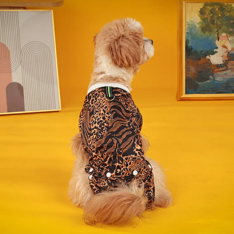 Traje de recuperación quirúrgica para perros después de la cirugía, mono suave y transpirable para perros, mono antilamer para heridas, leopardo rosa