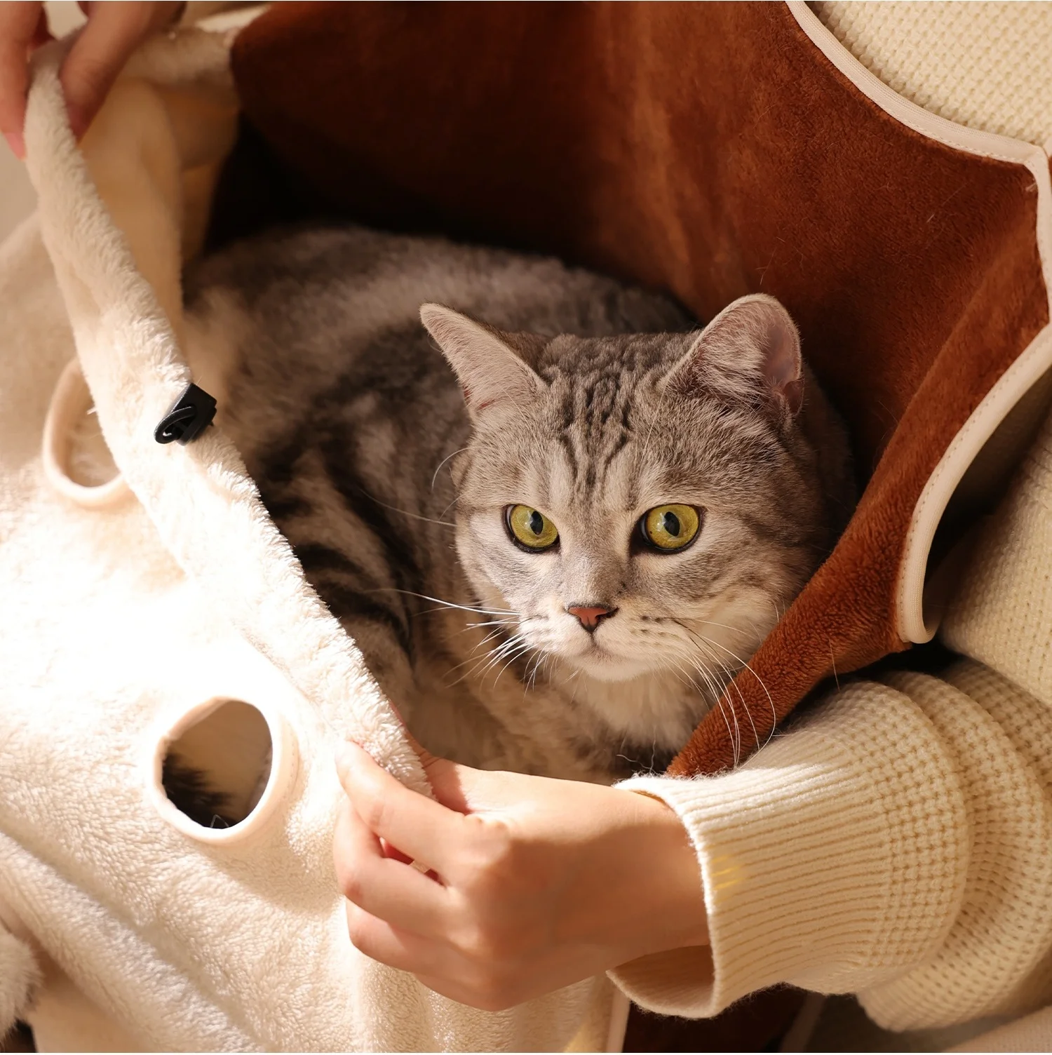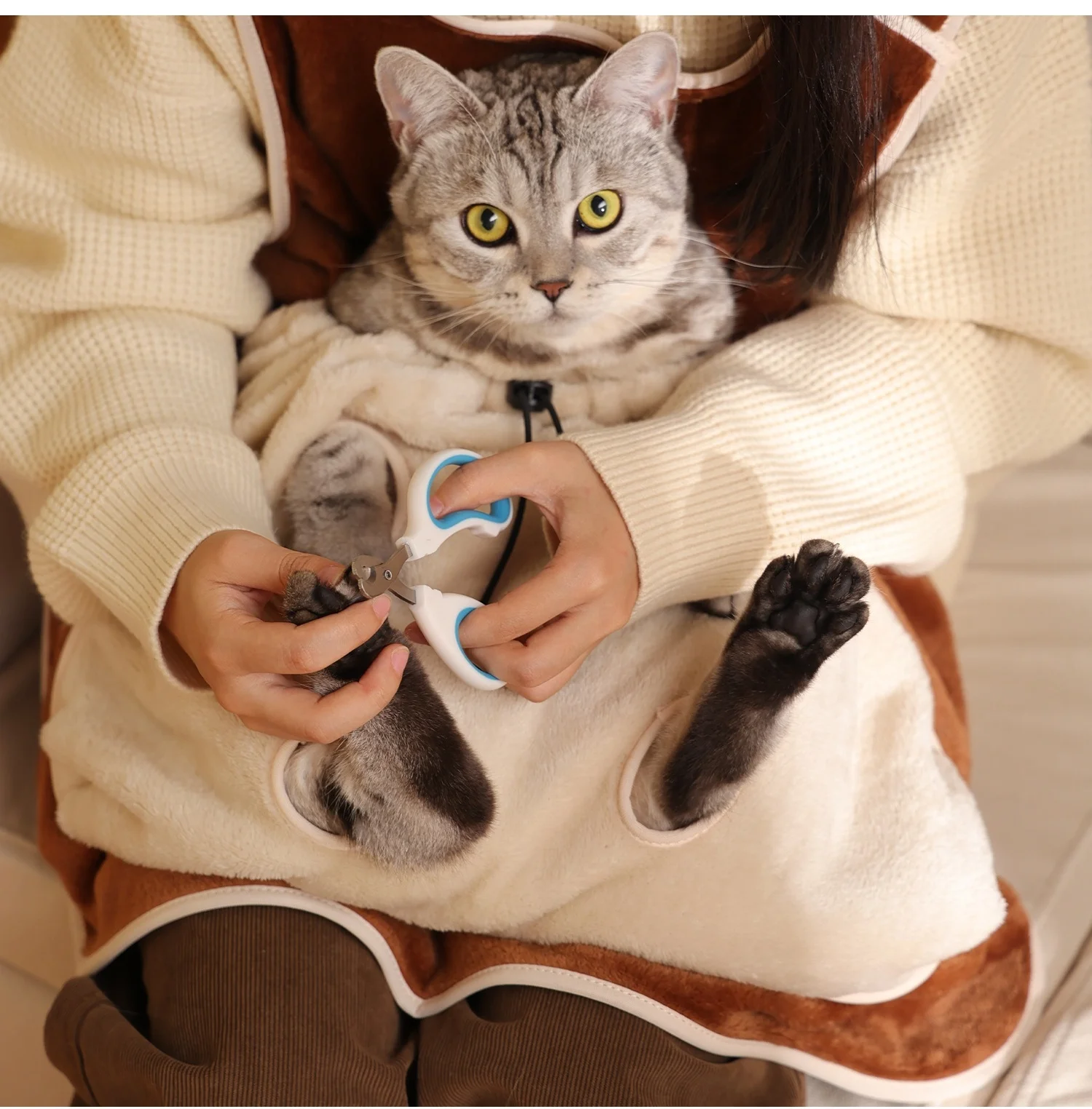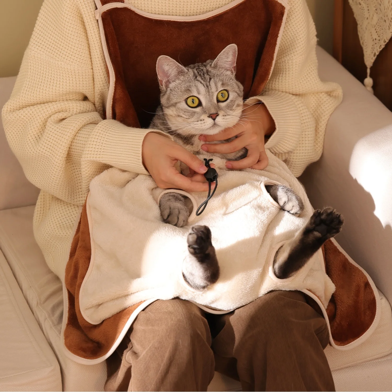 Traje de sujeción para gatos no se pega al pelo de mascotas, delantal impermeable para gatos, delantal suave para gatos, bolsa ajustable para gatos, delantal marrón