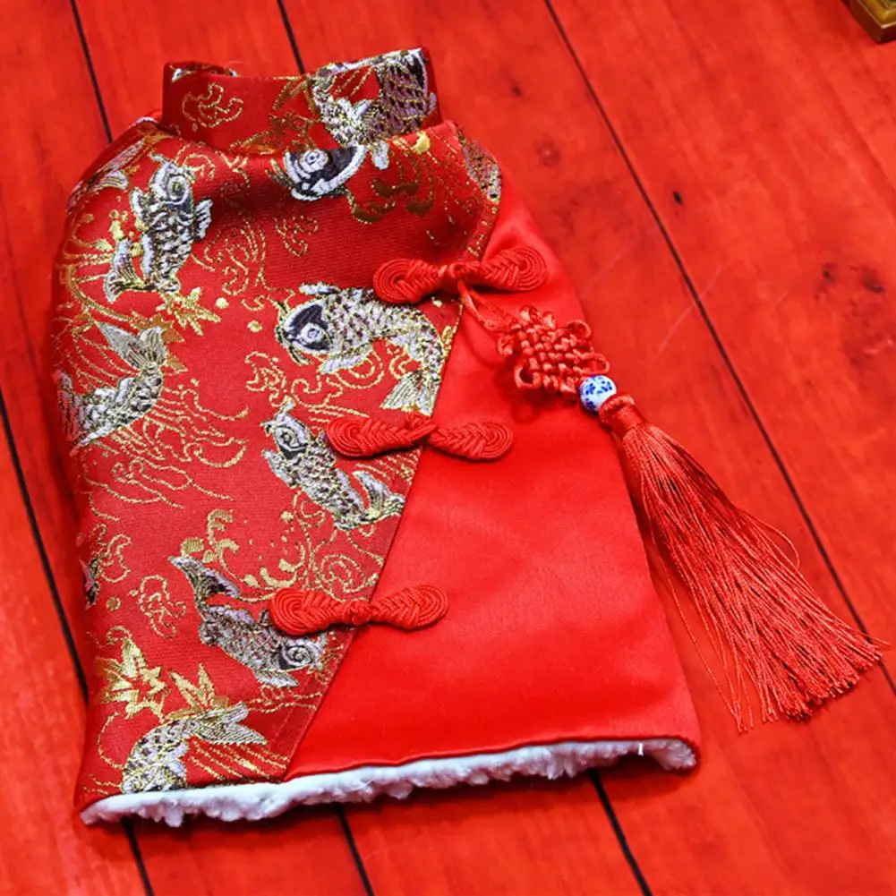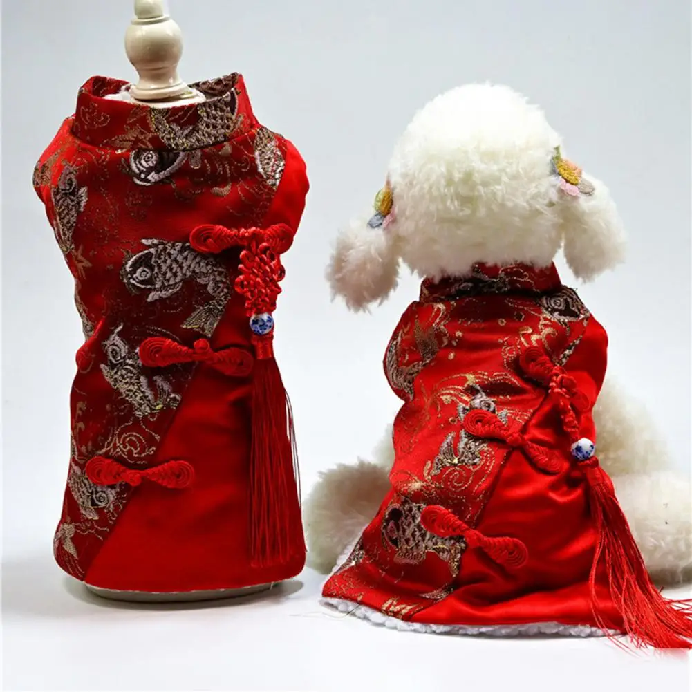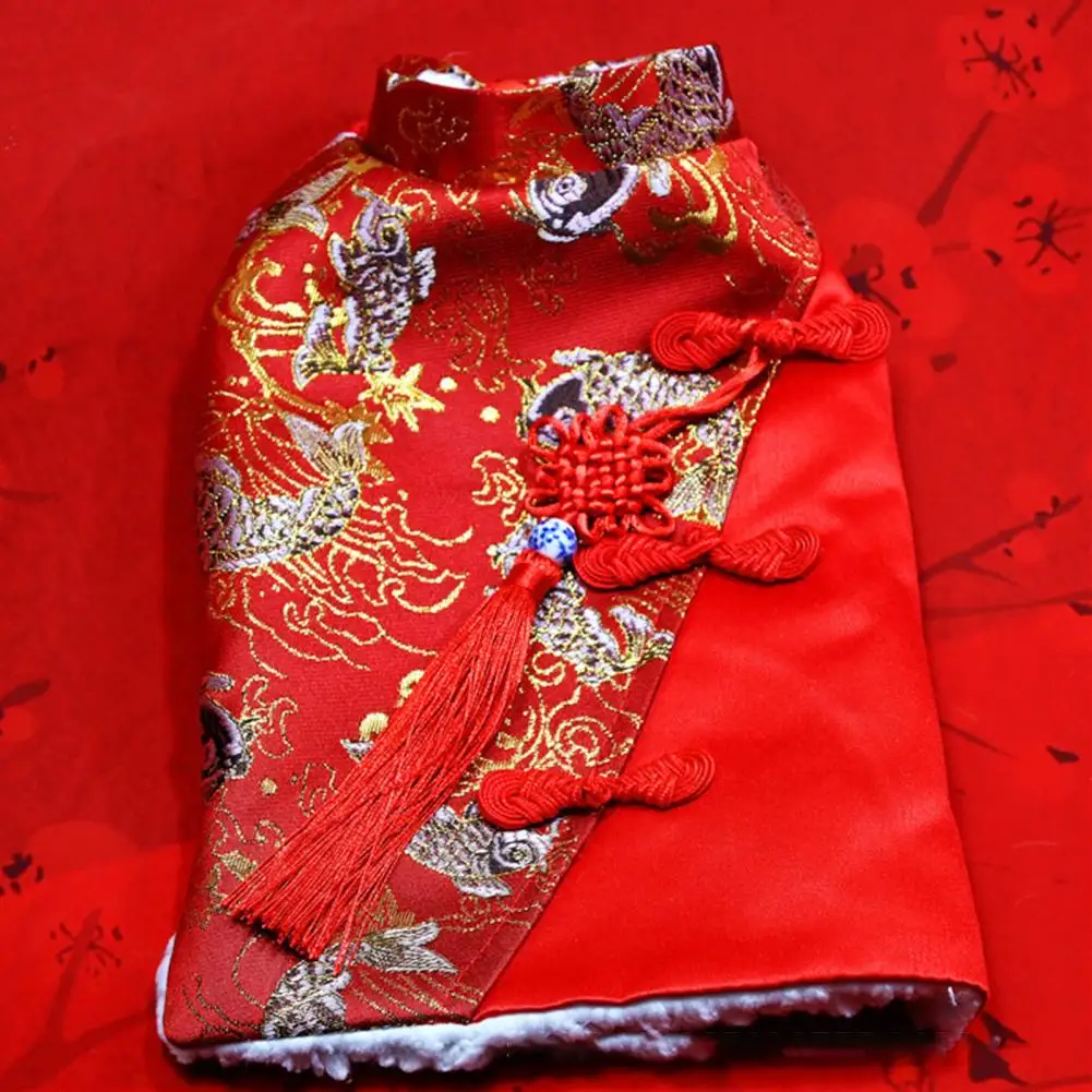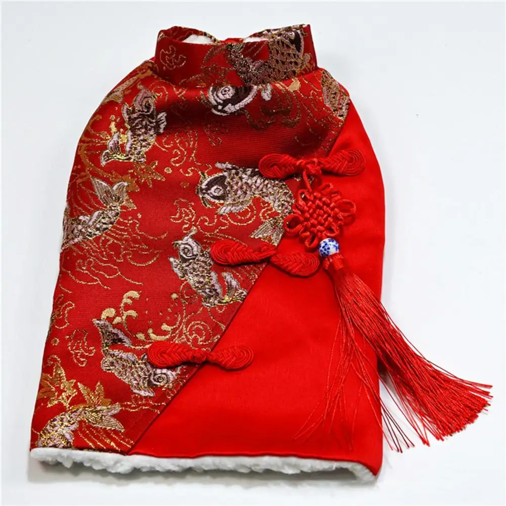 Traje Tang para mascotas Patrón de bordado de carpa Mantener el calor Estilo chino Moda Mascotas Perros Abrigo Trajes para Año Nuevo