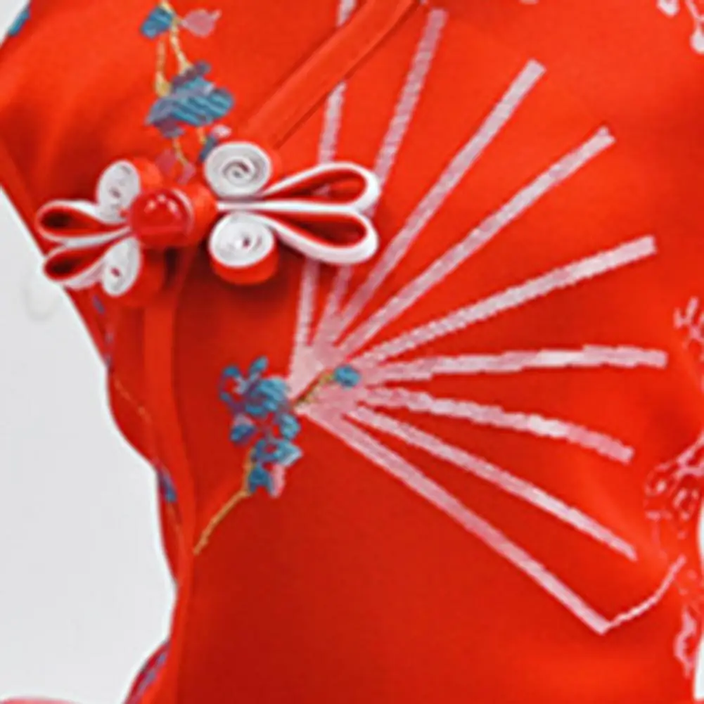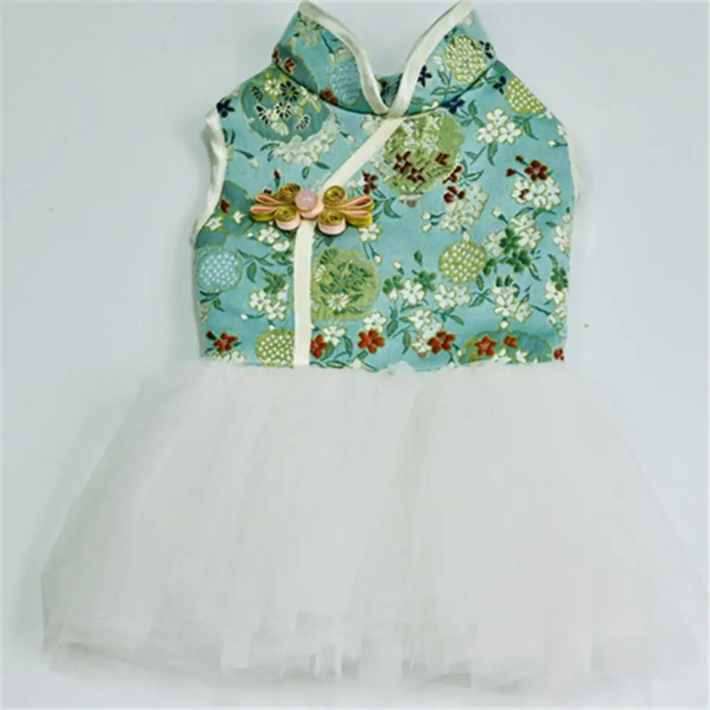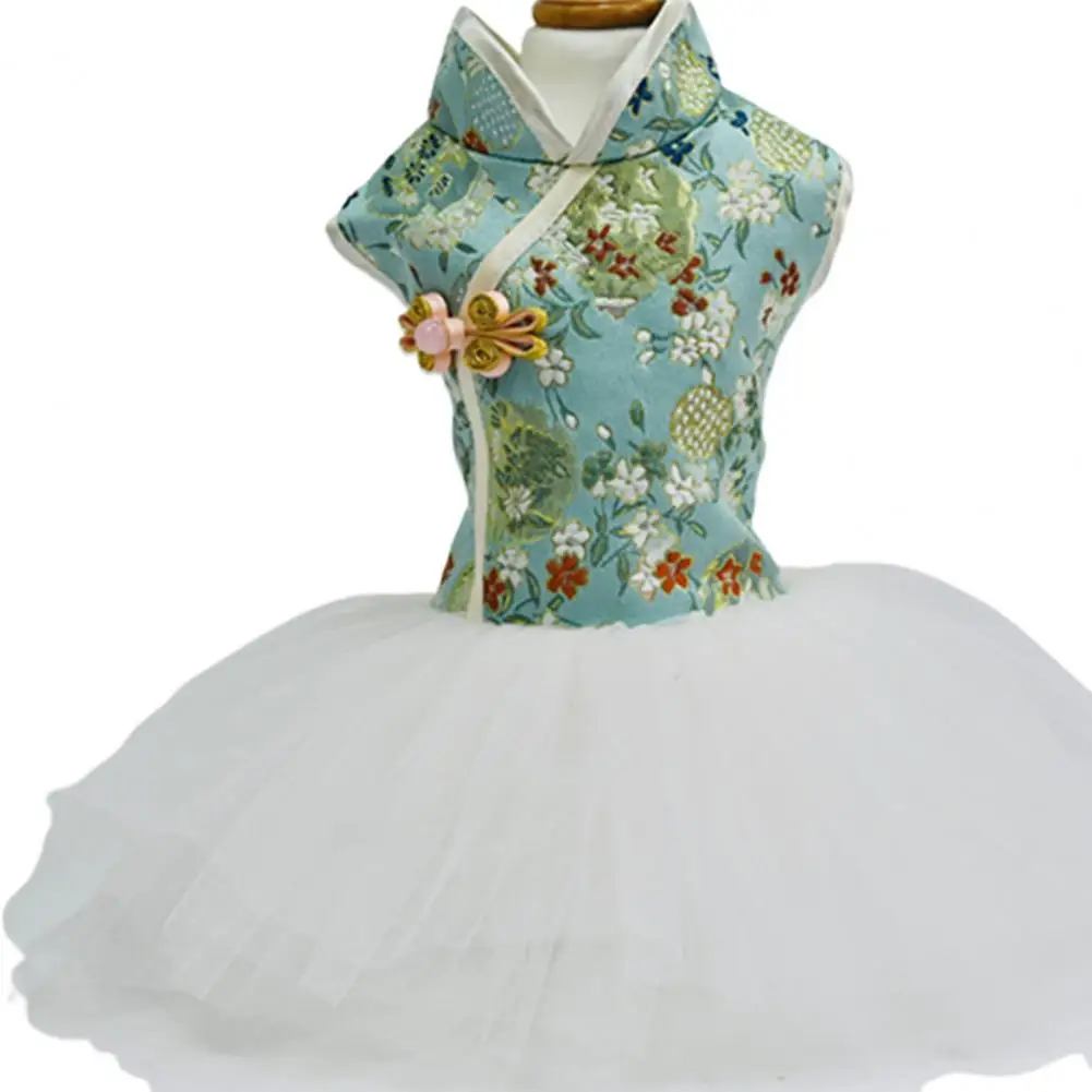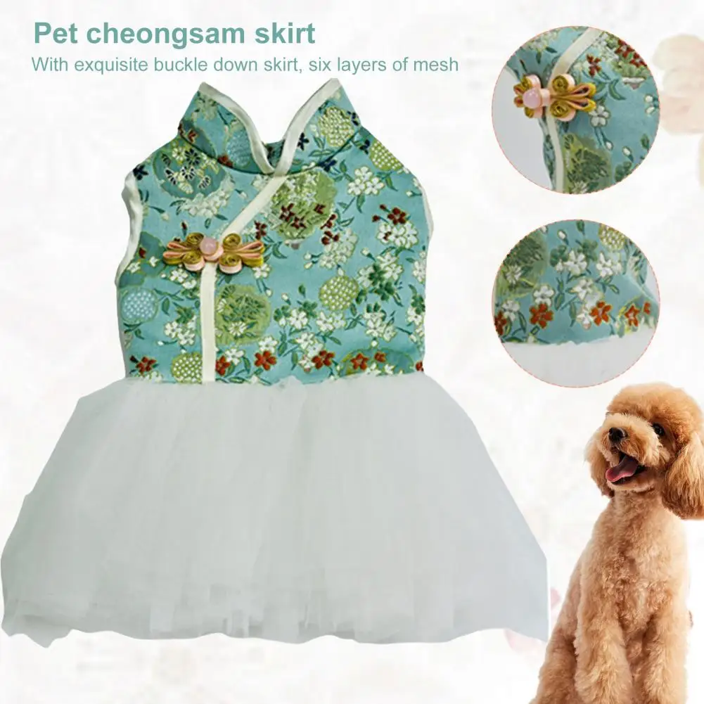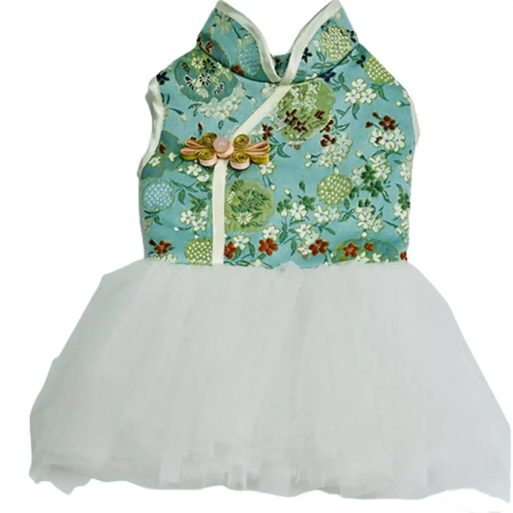 Traje Tang para mascotas Vestido de estilo chino Perros de compañía amigables con la piel Vestido de tul Cheongsam para Año Nuevo