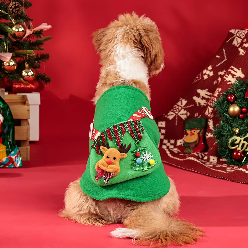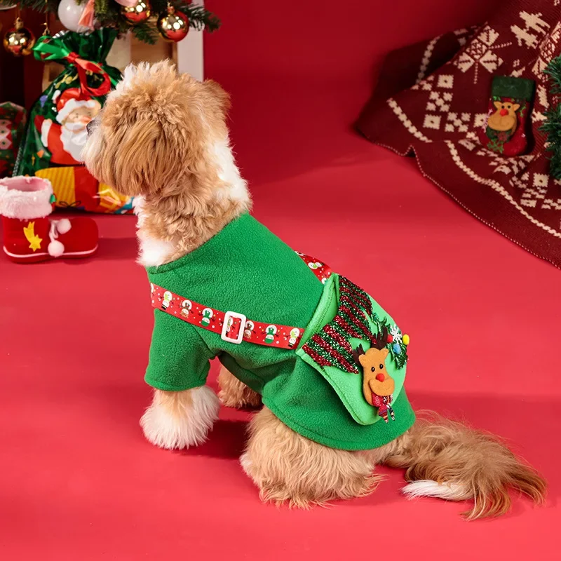 Traje verde de invierno para mascotas, sudadera con capucha navideña para perros S-XL con reno de bolsillo, sudadera de lana cálida para perros pequeños/medianos,