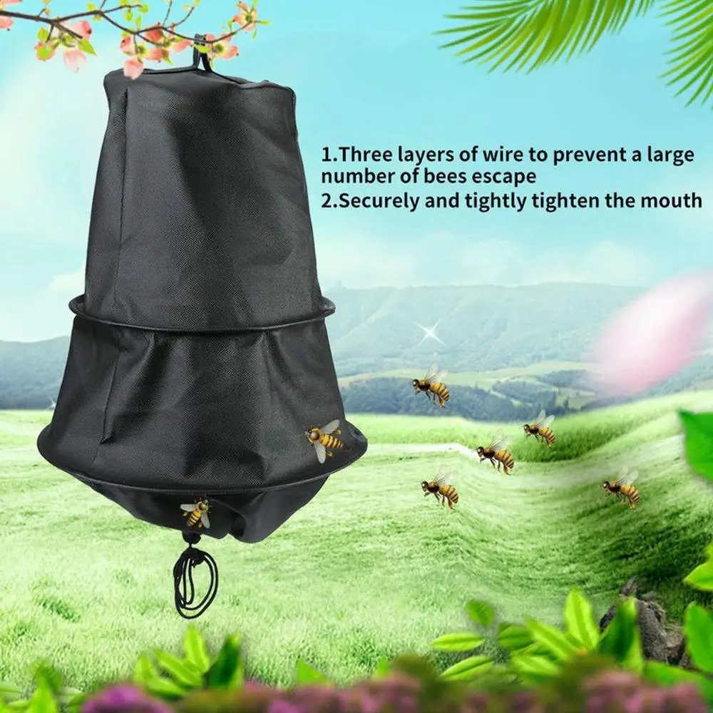 2. Trampa de abejas confiable: esta trampa de enjambre de abejas tiene un diseño antilesiones que evita las picaduras de abejas y le permite atrapar y reubicar a las abejas de manera segura. La abertura de la bolsa se puede apretar para garantizar la seguridad de las abejas y los apicultores. Este producto es conveniente tanto para principiantes como para expertos.