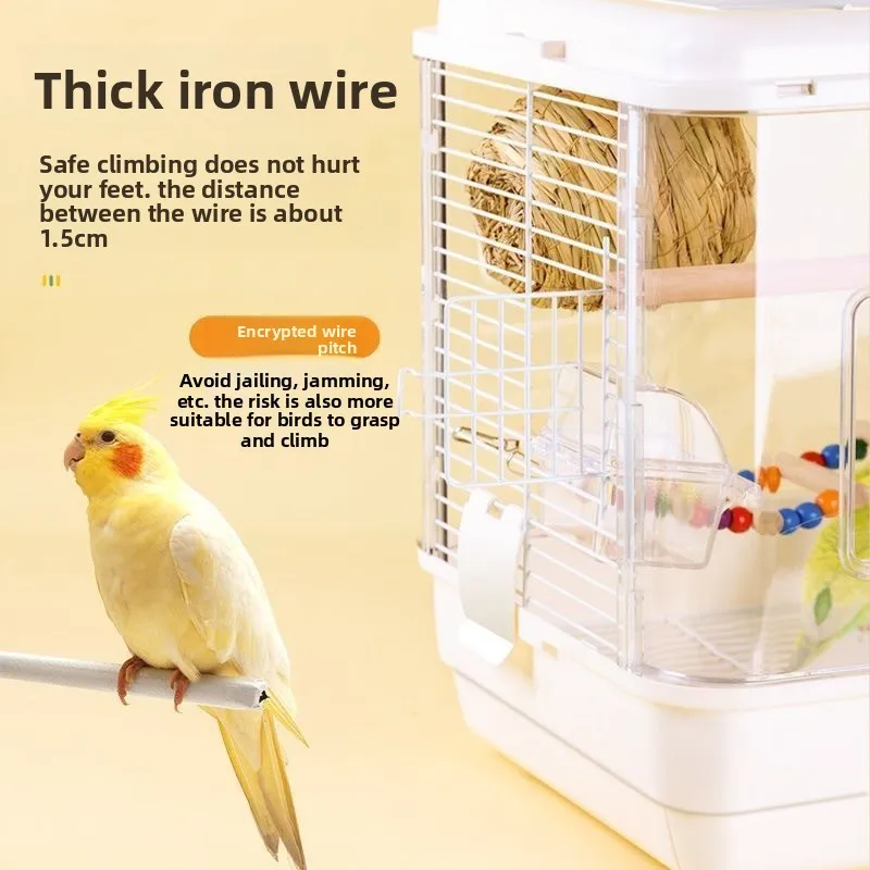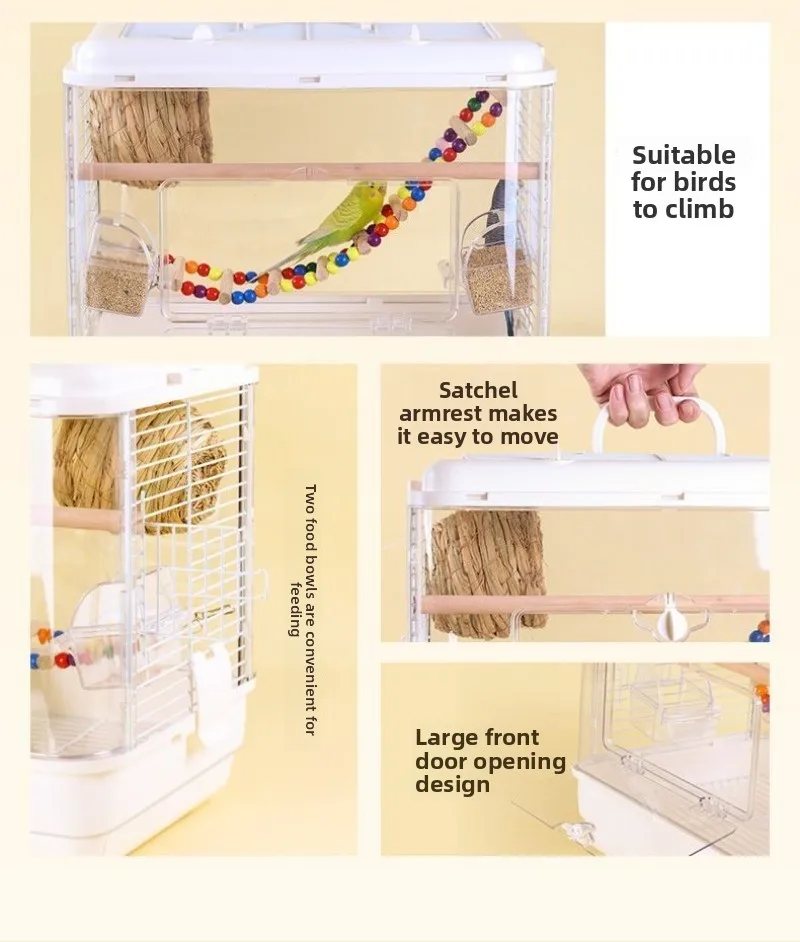 Transparent Acrylic Birdcage Portable Budgie Parrot Canary Viewing Cage Wire Large Household Bird Villa Pet Breeding Supplies