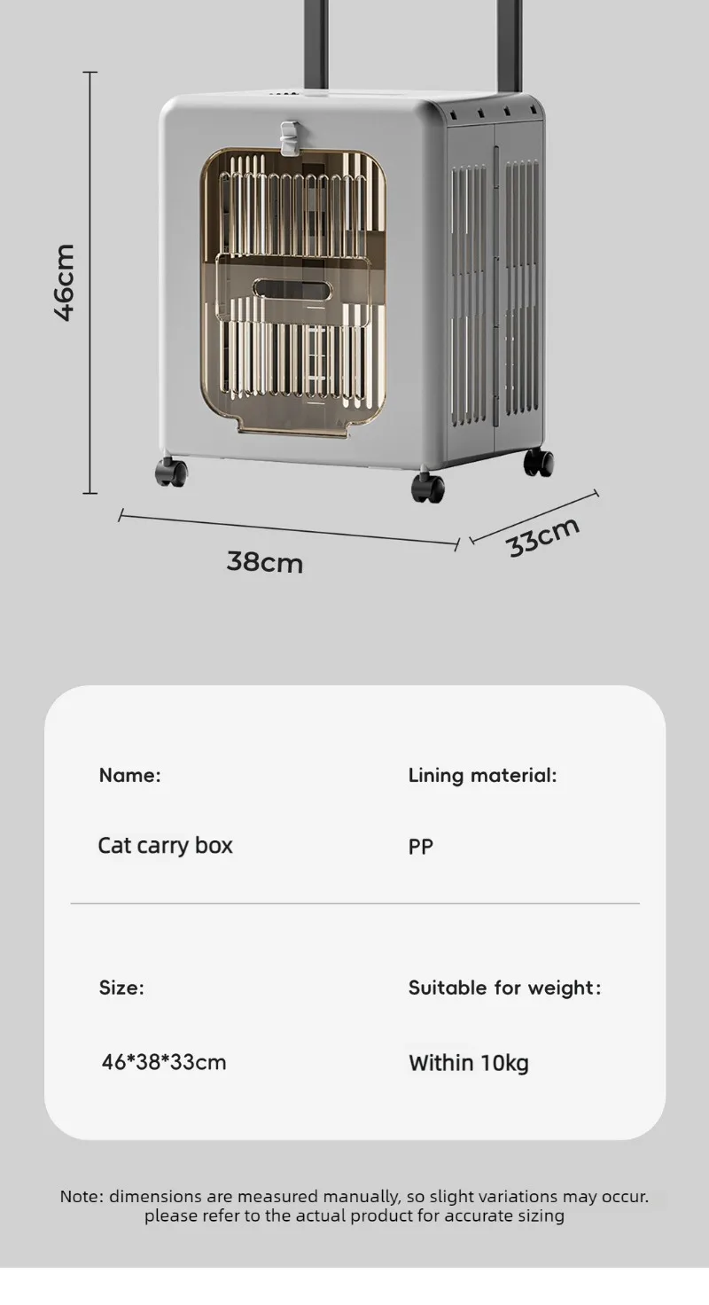 Transportín para gatos al aire libre con rueda, mango telescópico, transpirable, duradero, caja transportadora de viaje para perros pequeños, bolsa grande transparente para mascotas