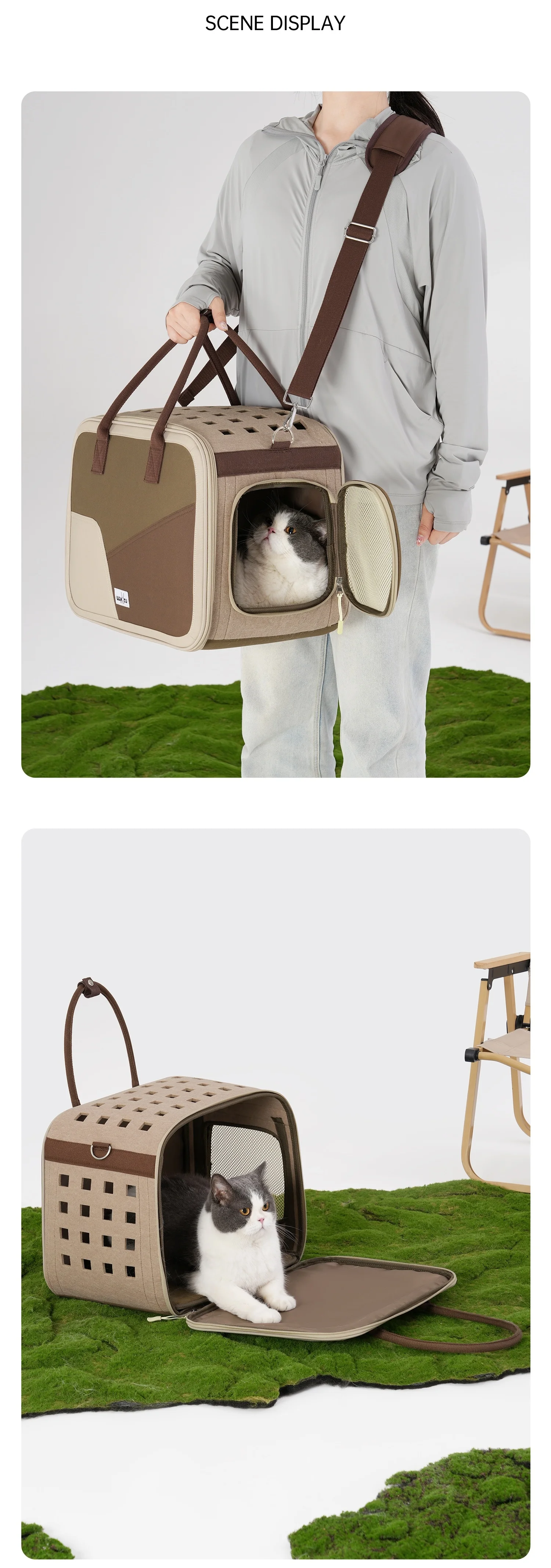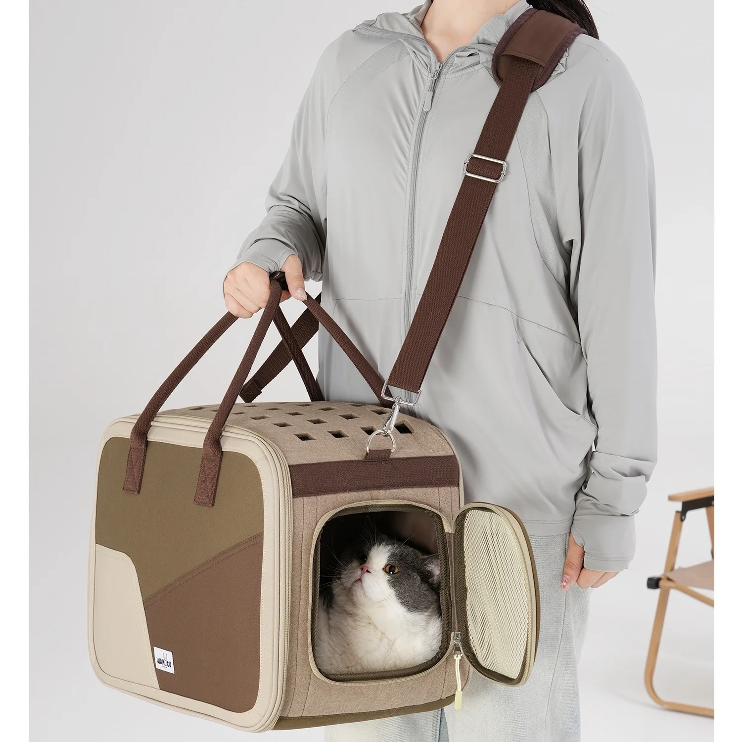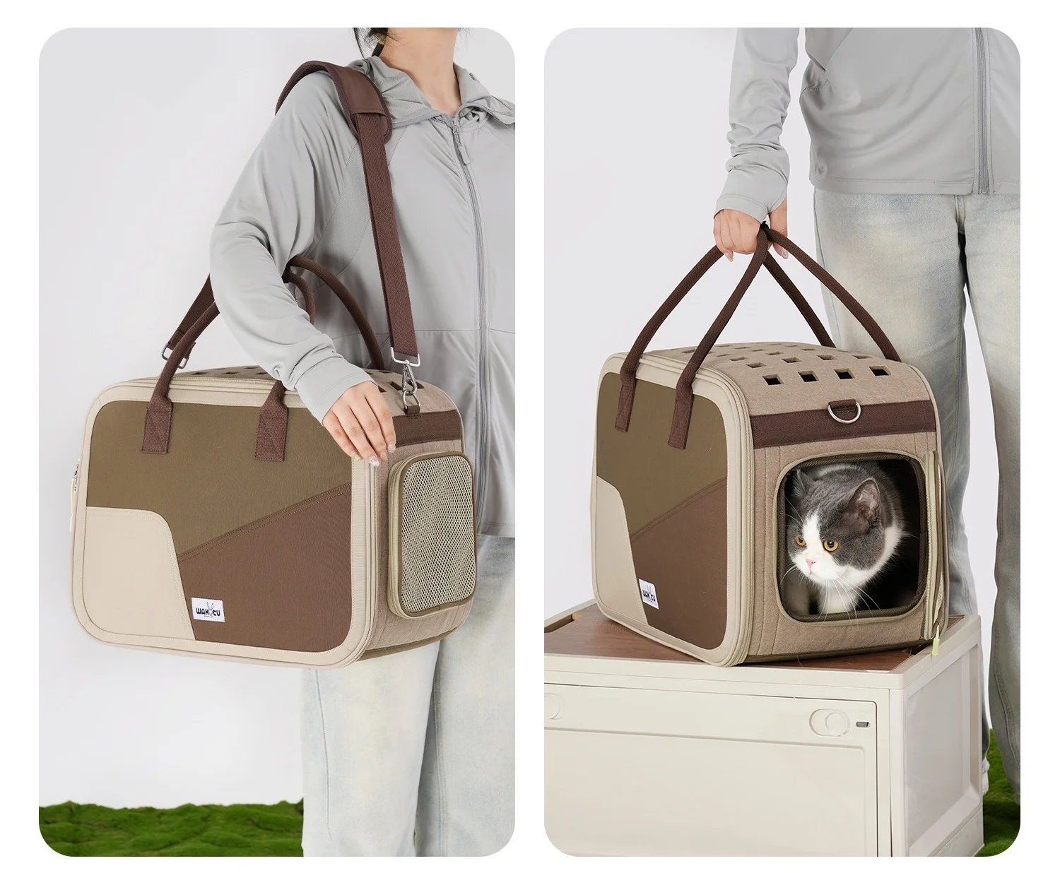 Transportín de lujo para mascotas, bolsa para mascotas de gran capacidad para perros y gatos, bolsa transportadora plegable de cara suave para gatos, bolsa portadora para perros, bandolera marrón